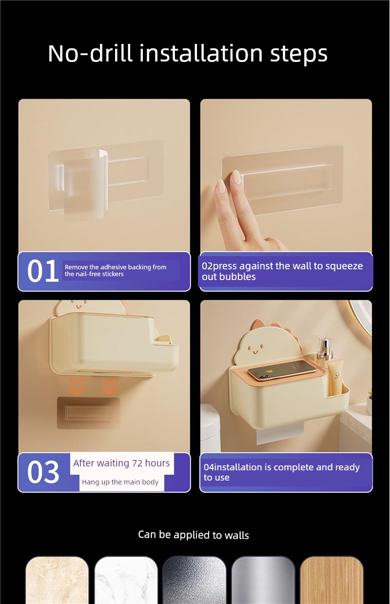 热卖无印风纸巾盒免打孔壁挂卫生间厕所墙上置物架收纳盒纸巾架抽纸盒