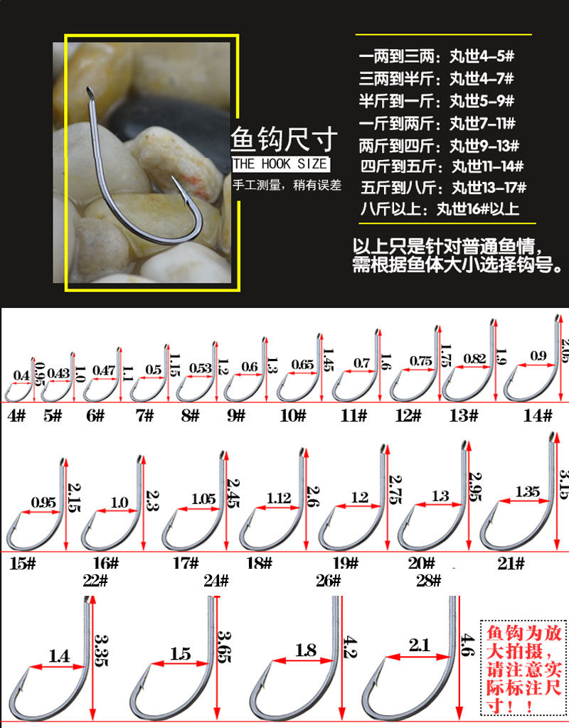 钓钩种类: 有倒刺钓钩