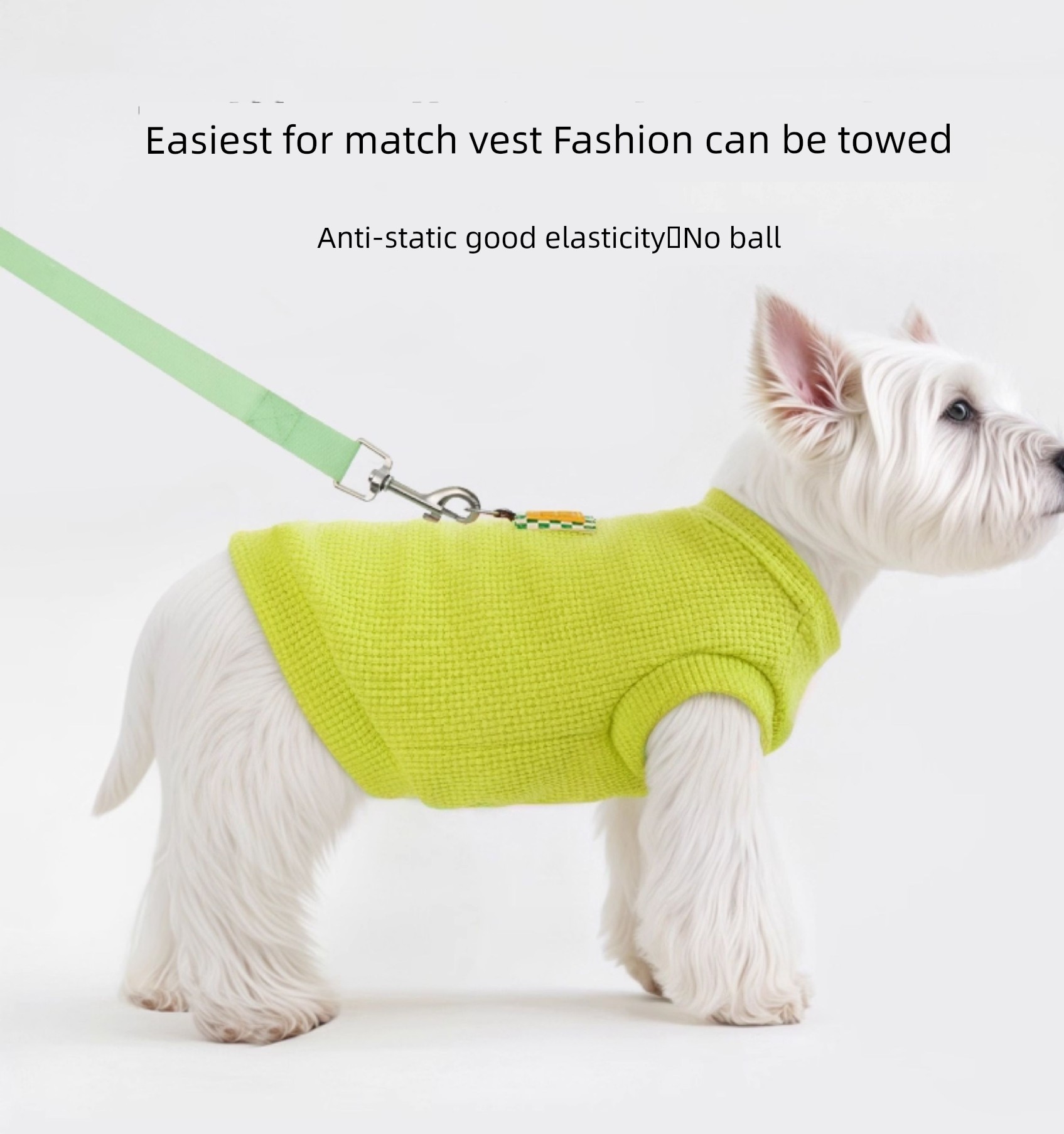 热卖狗狗衣服秋冬款带牵引扣宠物马甲西高地雪纳瑞泰迪比熊抹茶色背心