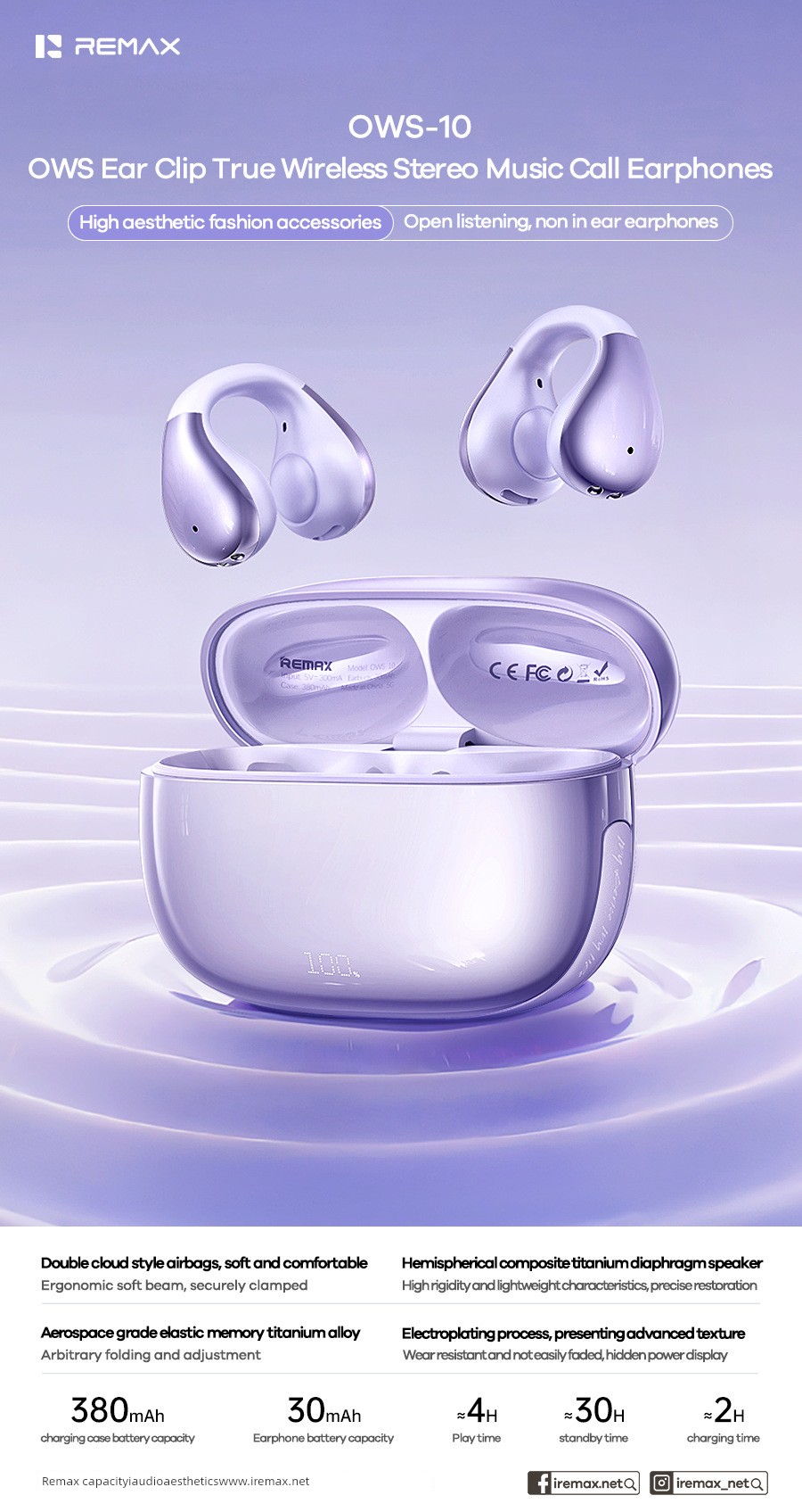 热卖REMAX睿量 记忆钛合金双云朵式OWS夹耳款蓝牙6.0立体声音乐小耳机
