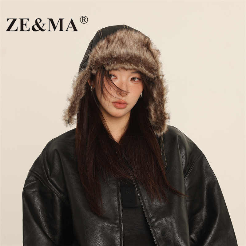 ZE&MA冬季保暖雷锋帽子女秋冬女款冷帽冬户外防风帽毛线帽渔夫帽
