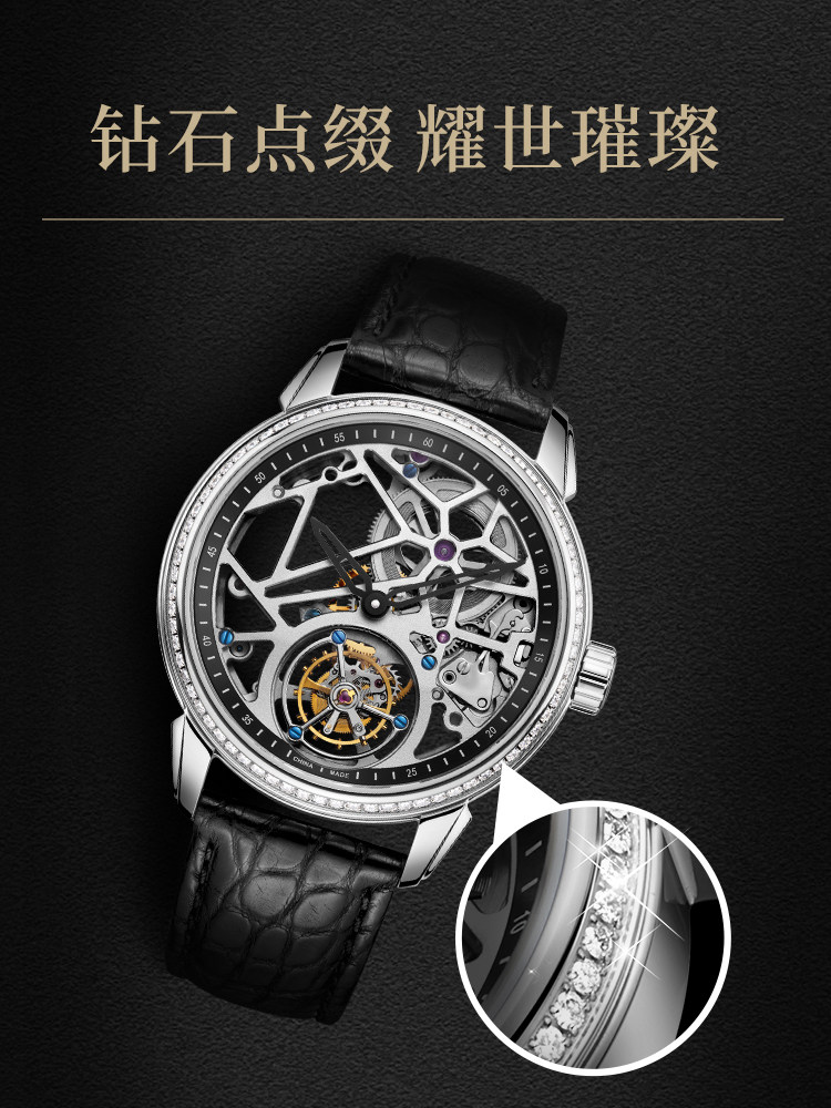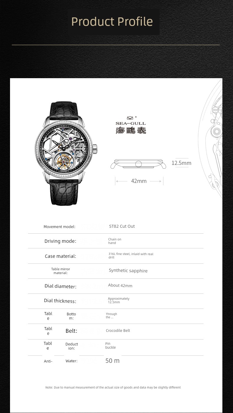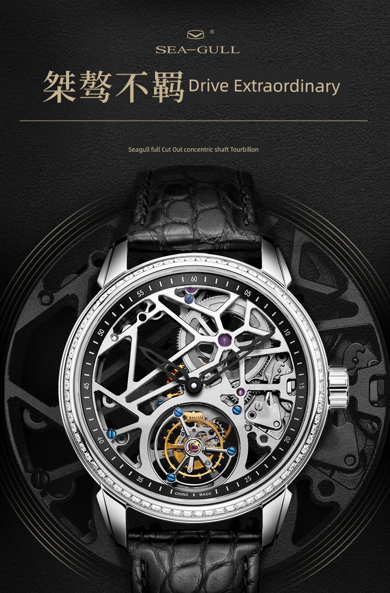 热卖【充值更优惠】海鸥手表男陀飞轮镂空手动机械表7048VK传承系列