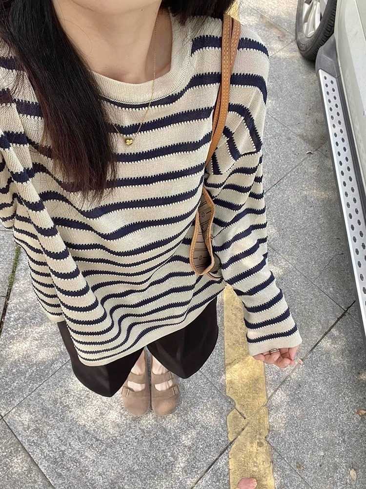 热卖韩系设计感条纹薄款长袖T恤女2025夏季新款慵懒风防晒罩衫上衣