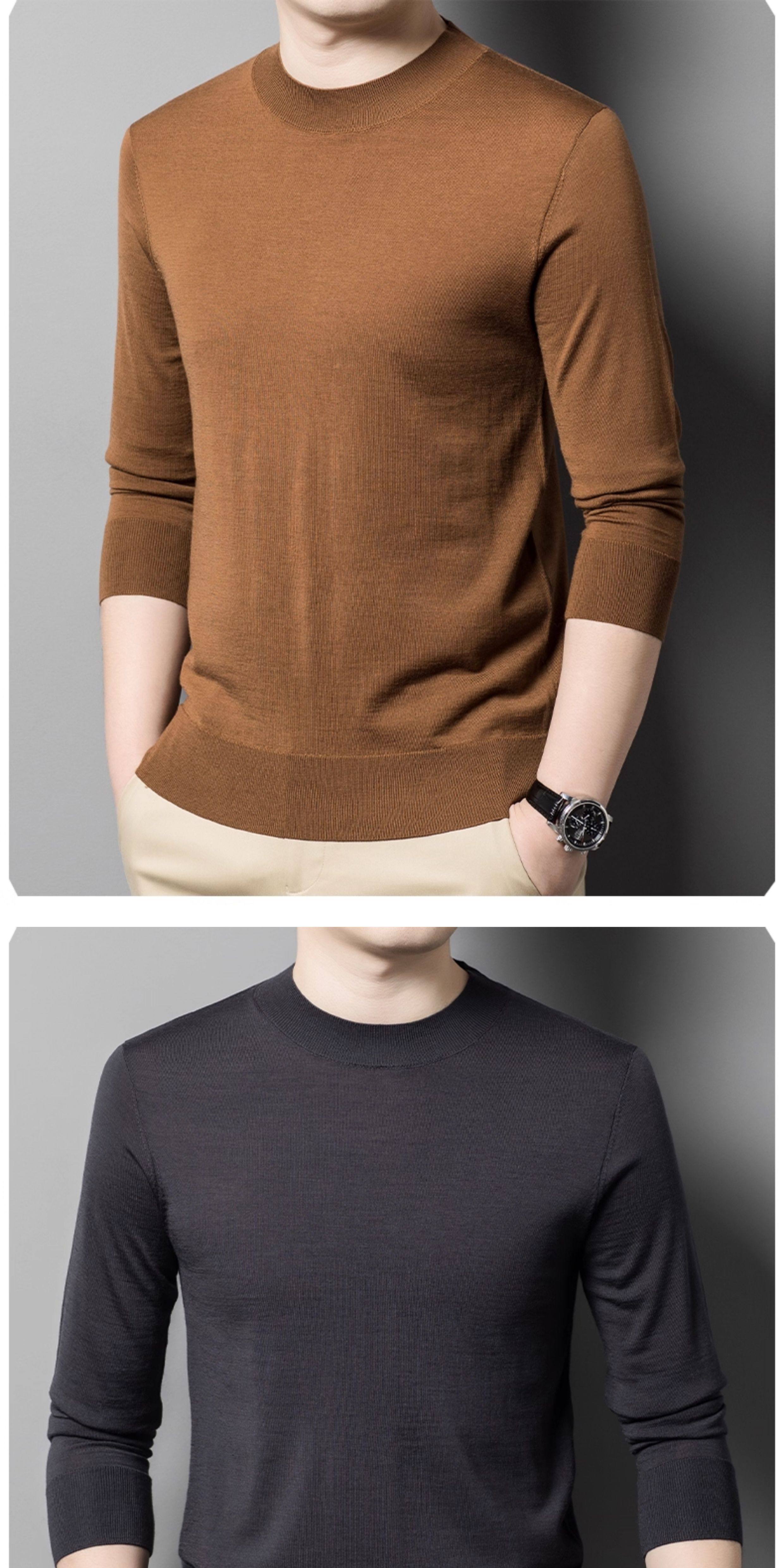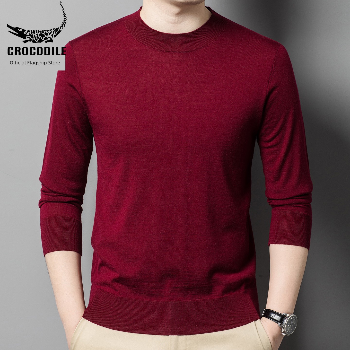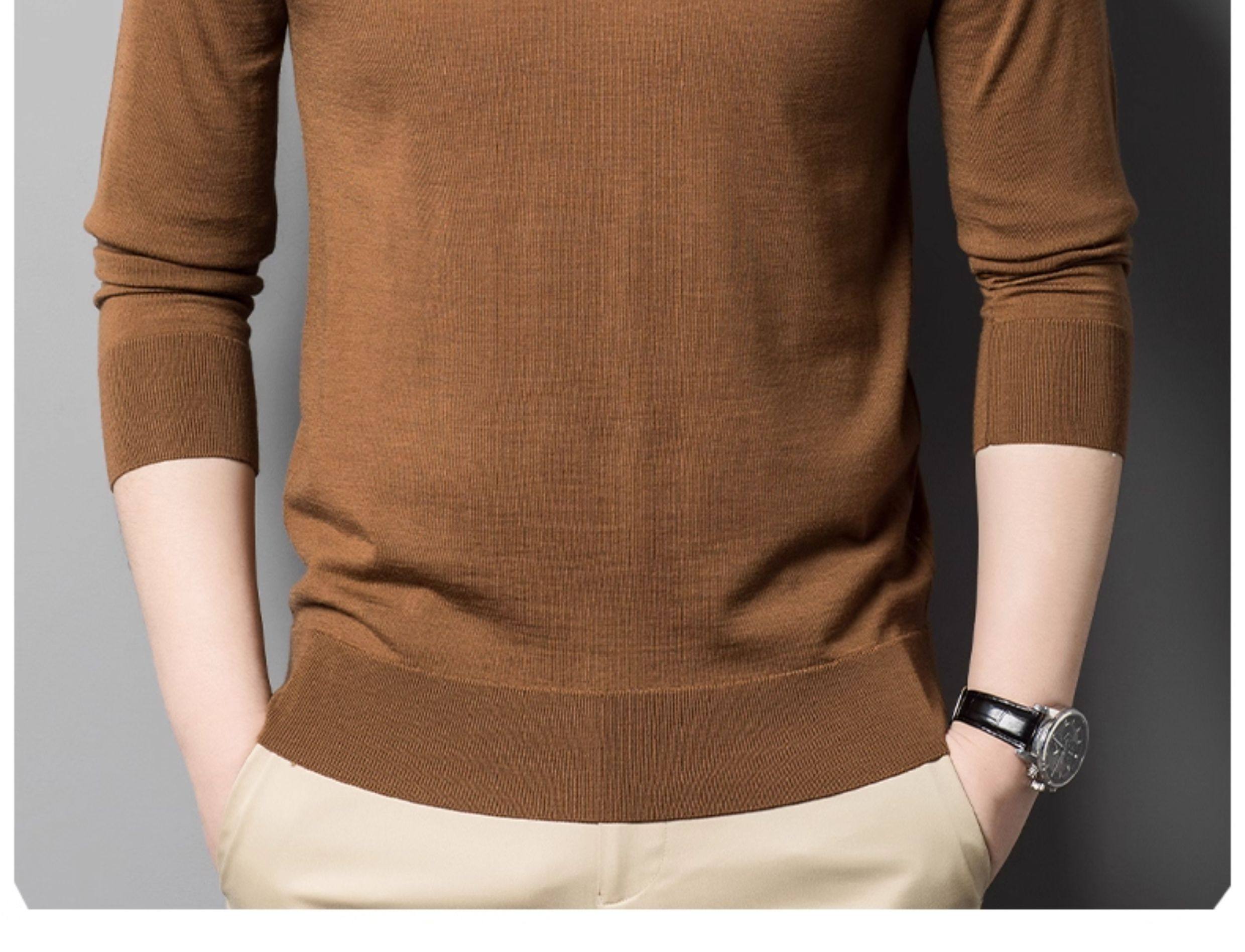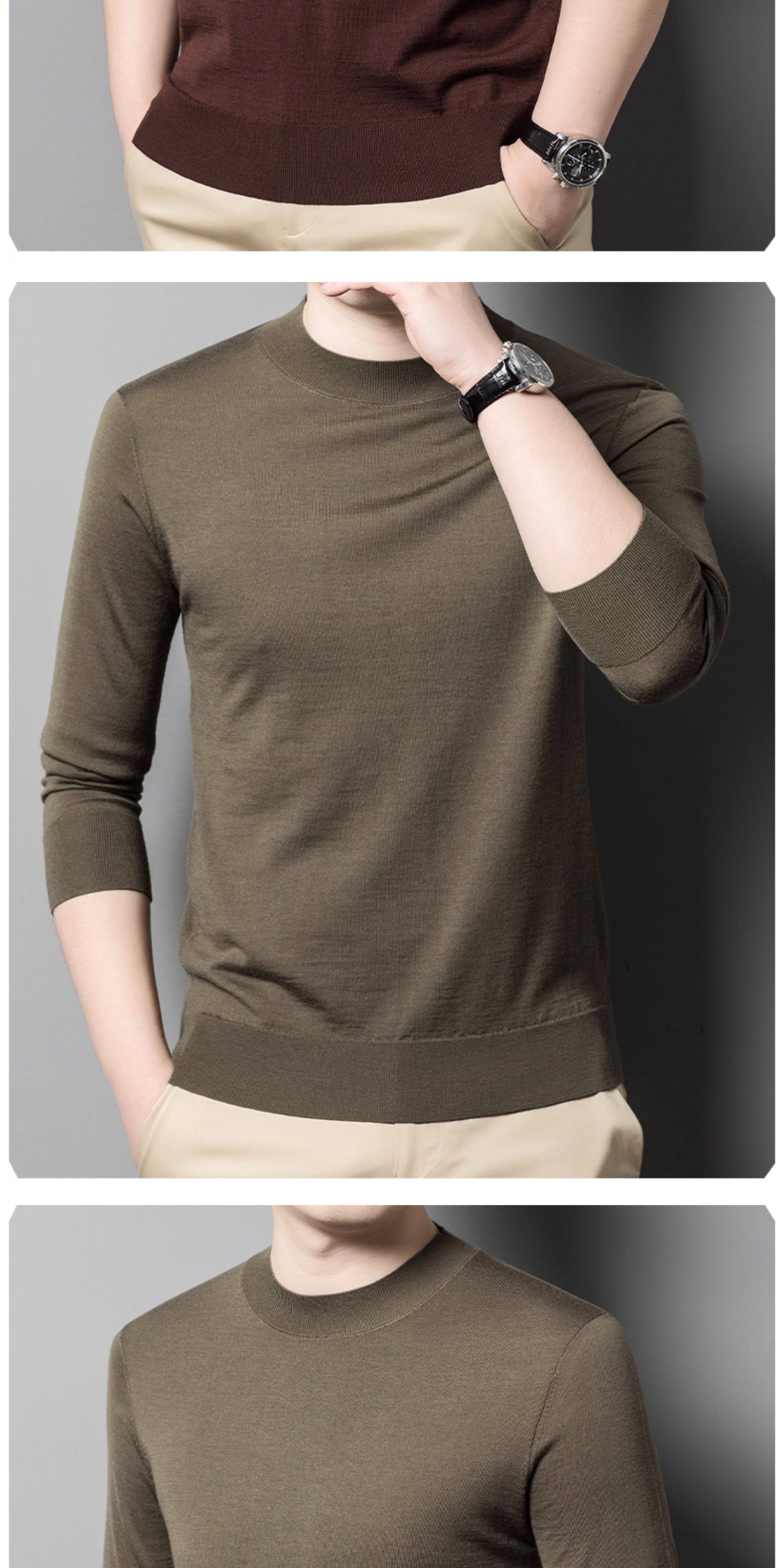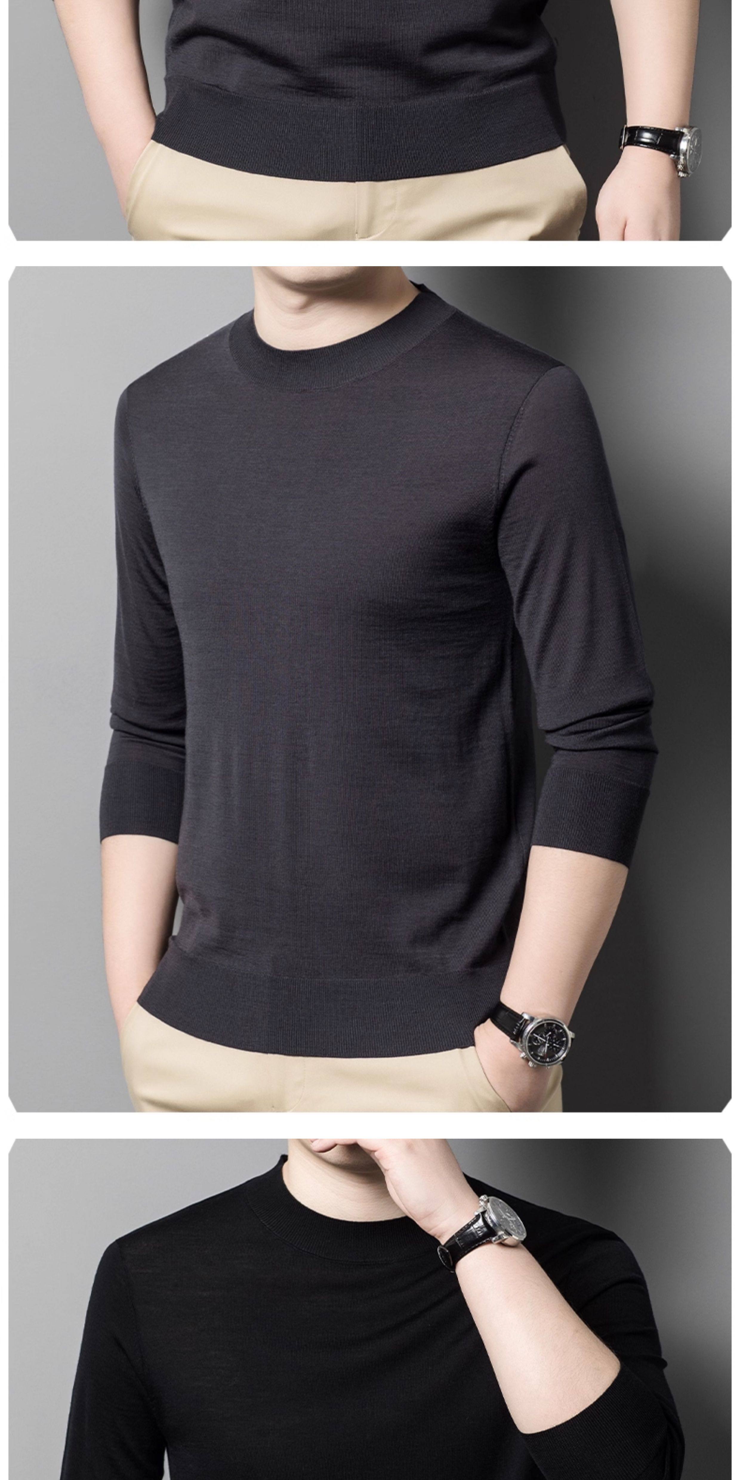 热卖鳄鱼恤秋冬薄款精纺纯羊毛衫男士圆领打底衫中年可机洗针织衫毛衣