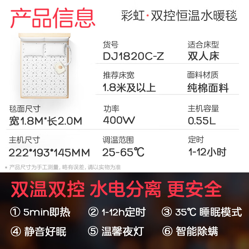 热卖彩虹双人双温双控型静音触控调温定时棉料水暖毯水暖电热毯2.0*1.8米