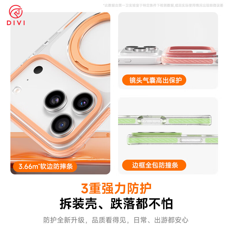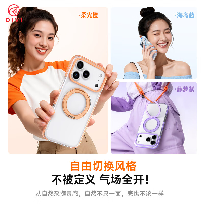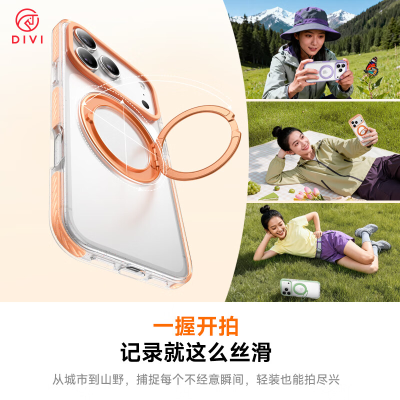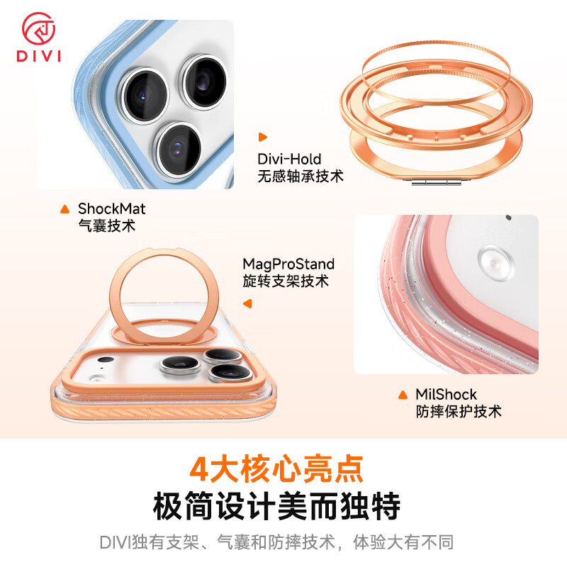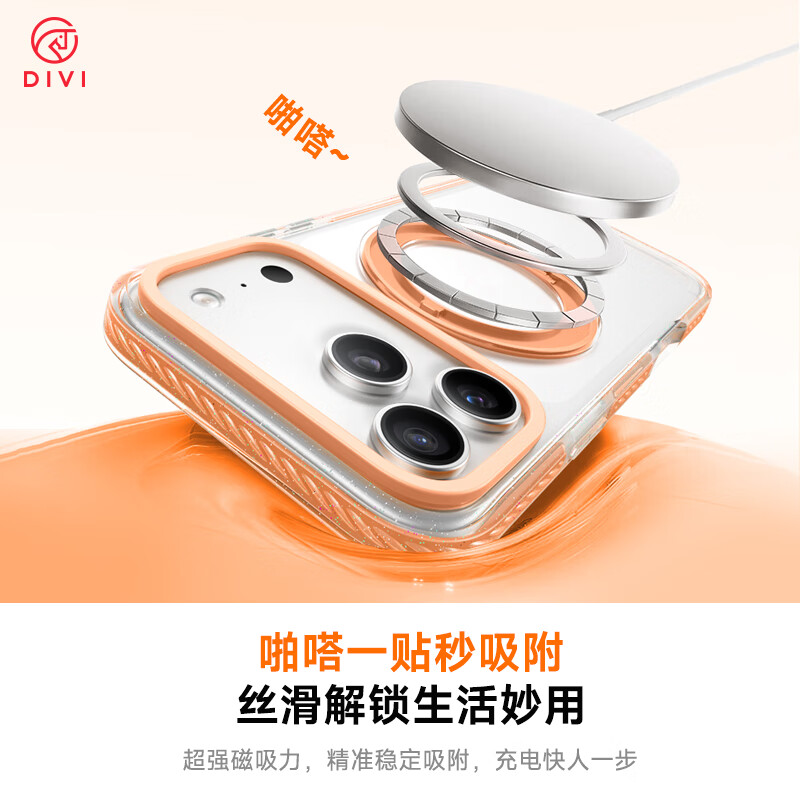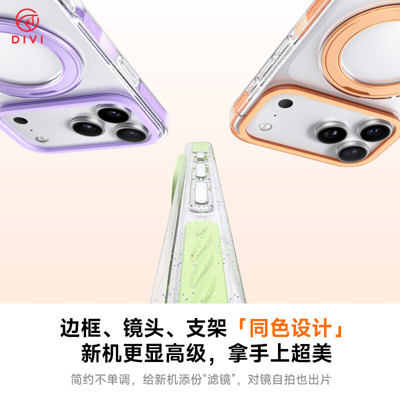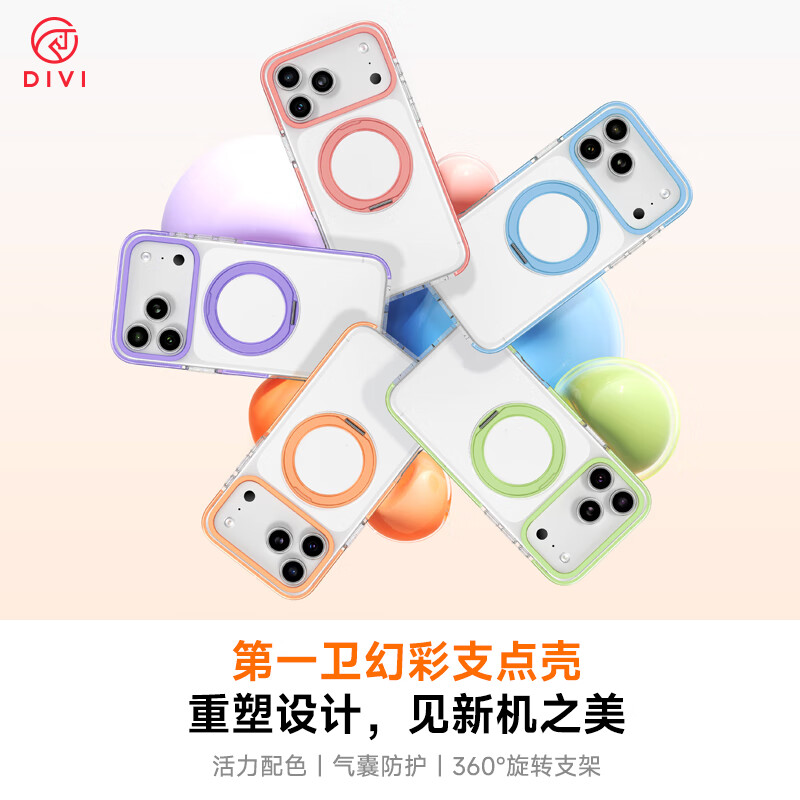 热卖第一卫DIVI【360°支点壳丨糖果气囊】适用苹果17promax手机壳iphone17promax保护套磁吸支架防摔透明粉色