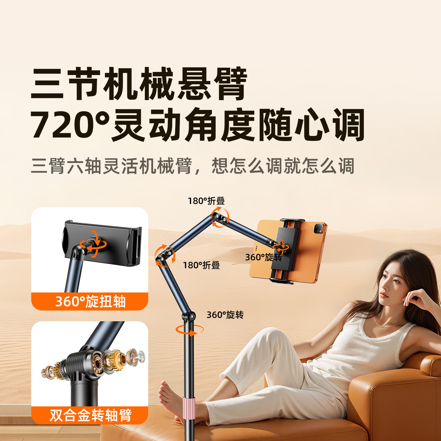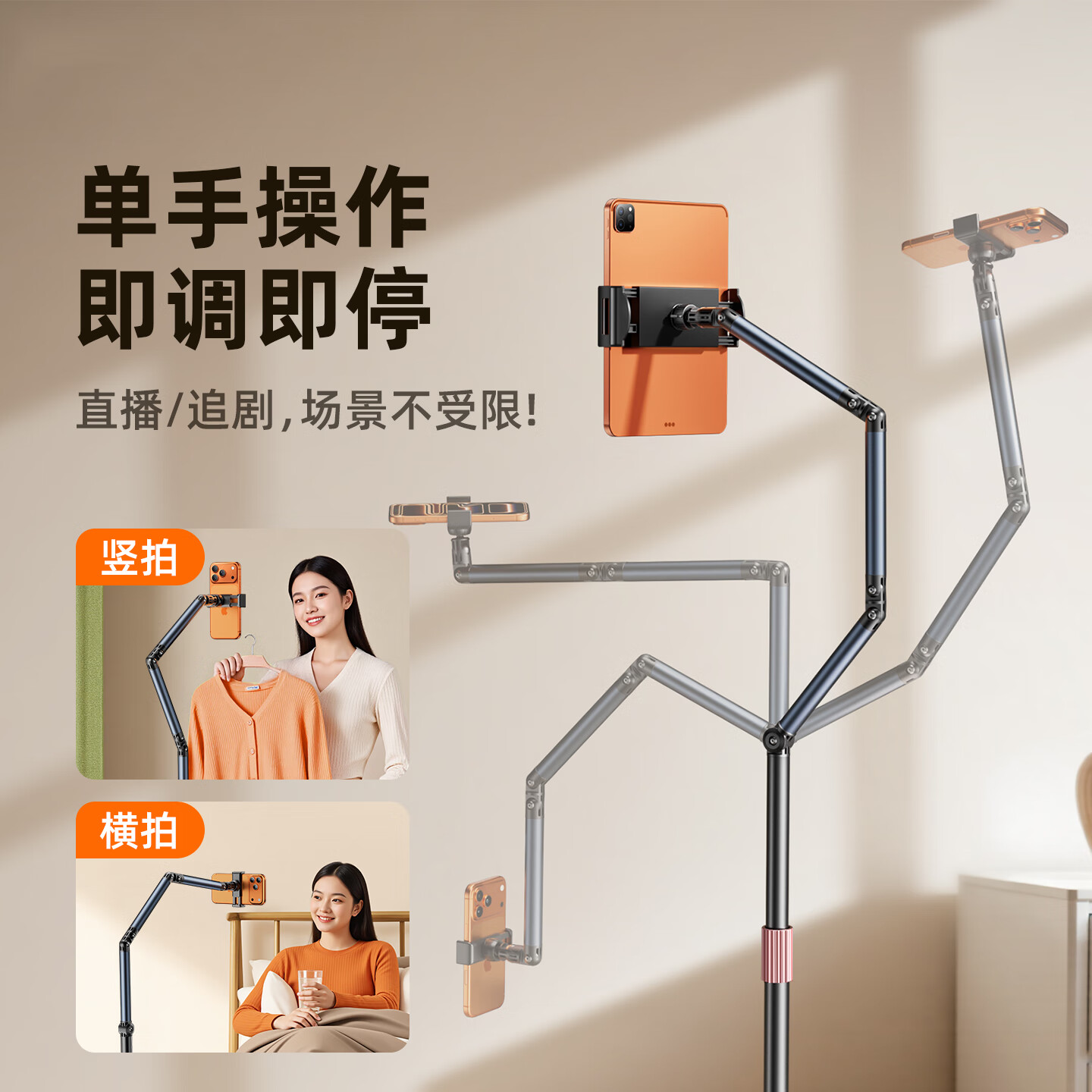热卖科润乐【万向滑轮】手机支架落地直播支架多功能拍摄俯拍可伸缩调节懒人支架床头追剧拍视频可移动支撑架