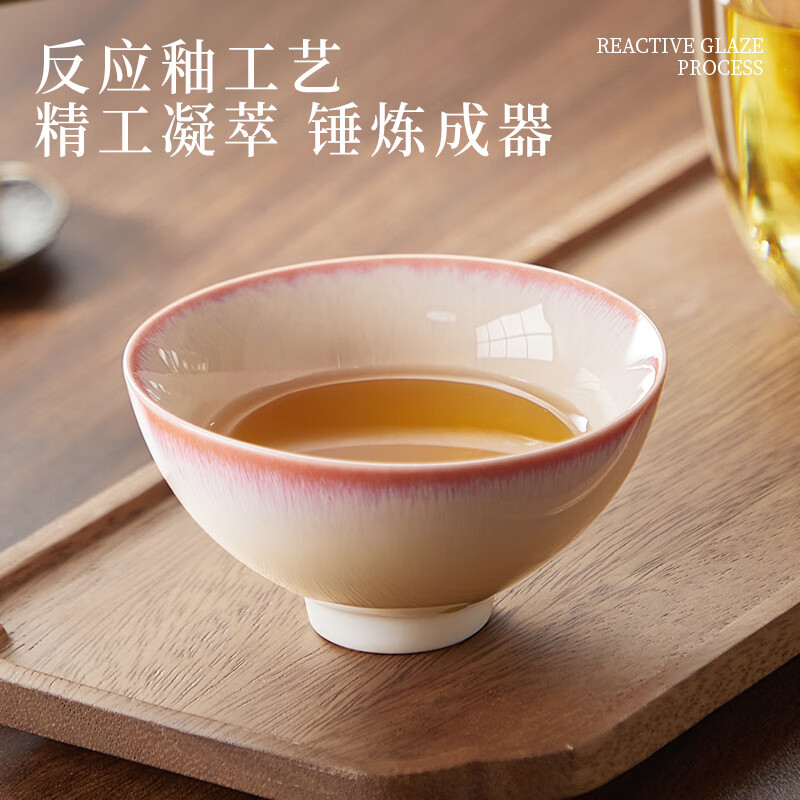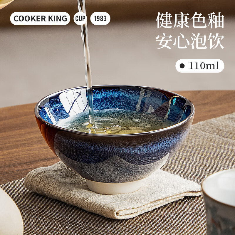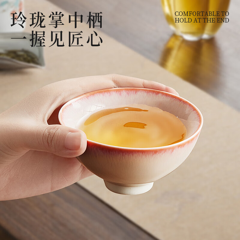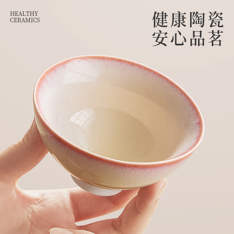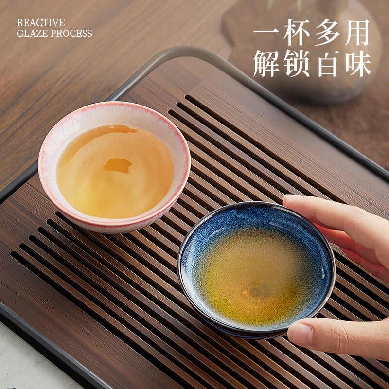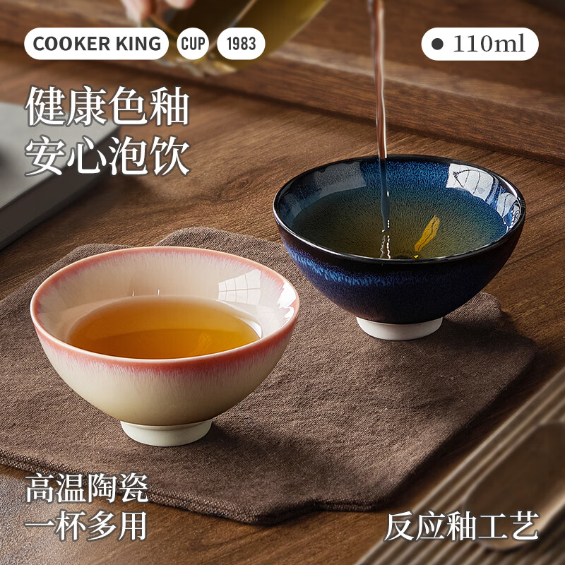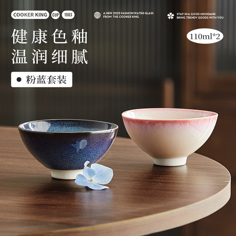 热卖炊大皇陶瓷水杯功夫茶杯茶具品茗礼盒礼物彩韵对杯(粉蓝套装110ml*2)