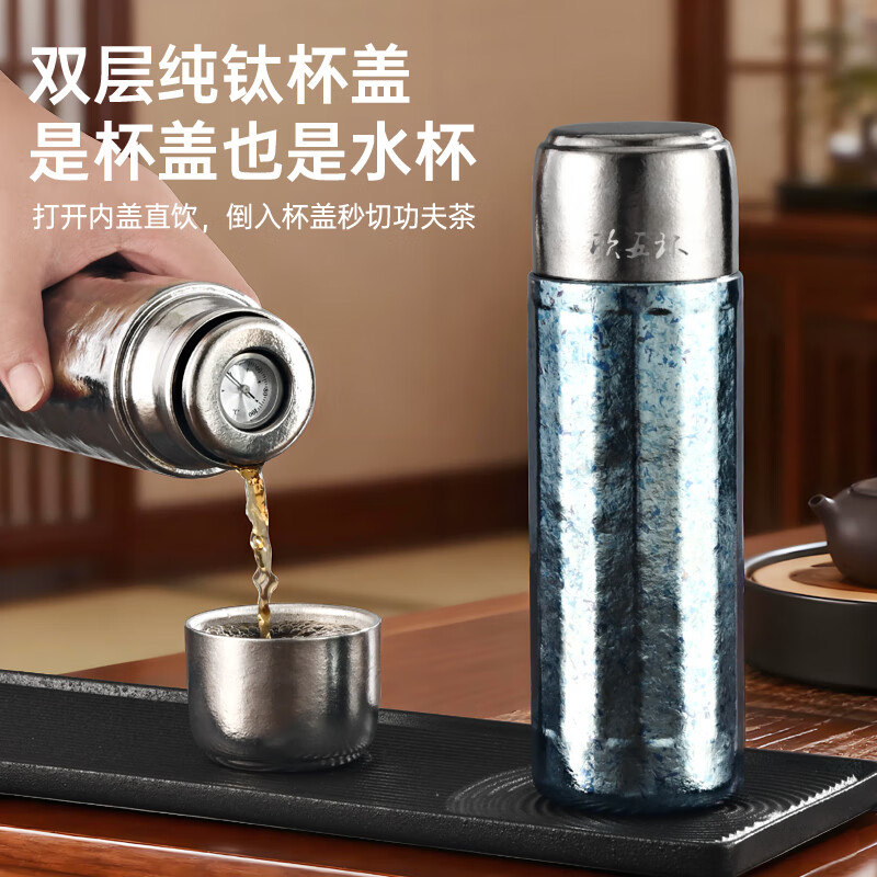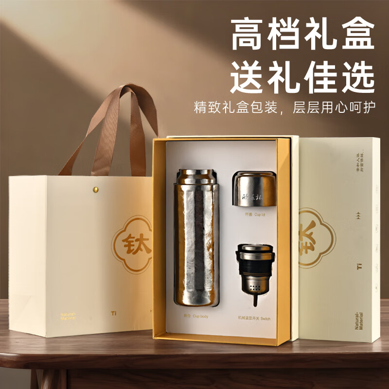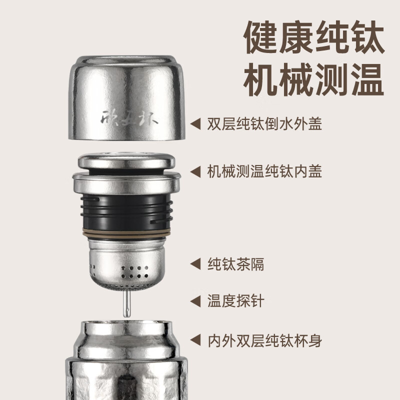 热卖欣五环纯钛杯纯钛保温杯男款2025新款泡茶户外水杯子外出便携钛本色