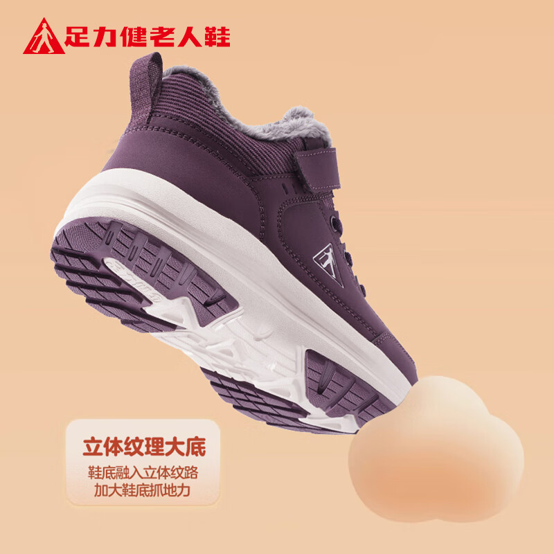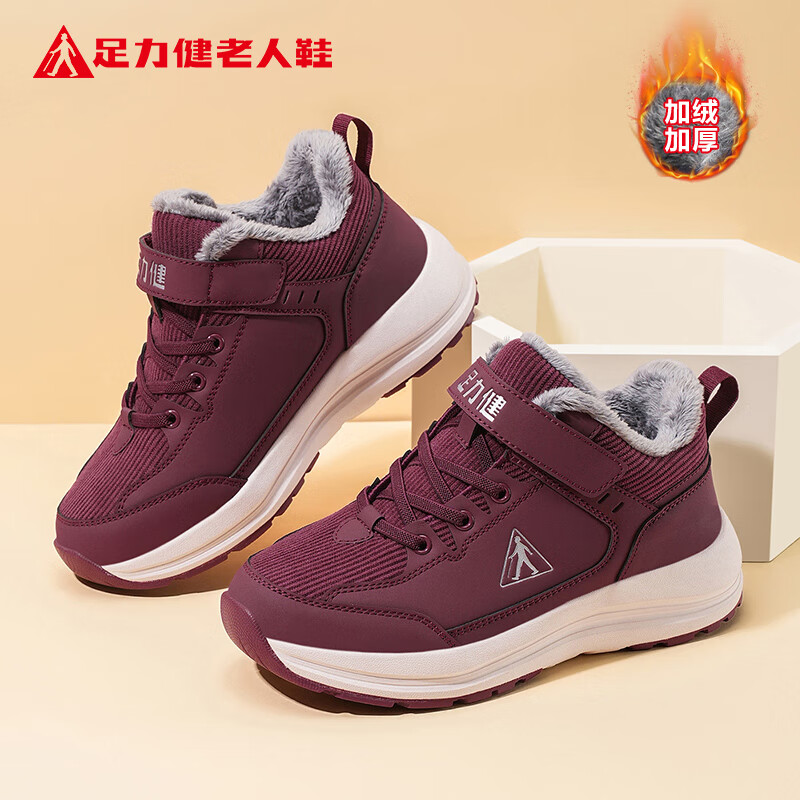 热卖足力健老人鞋冬季保暖加绒女士休闲鞋高帮防寒棉鞋妈妈鞋 6232K酒红41