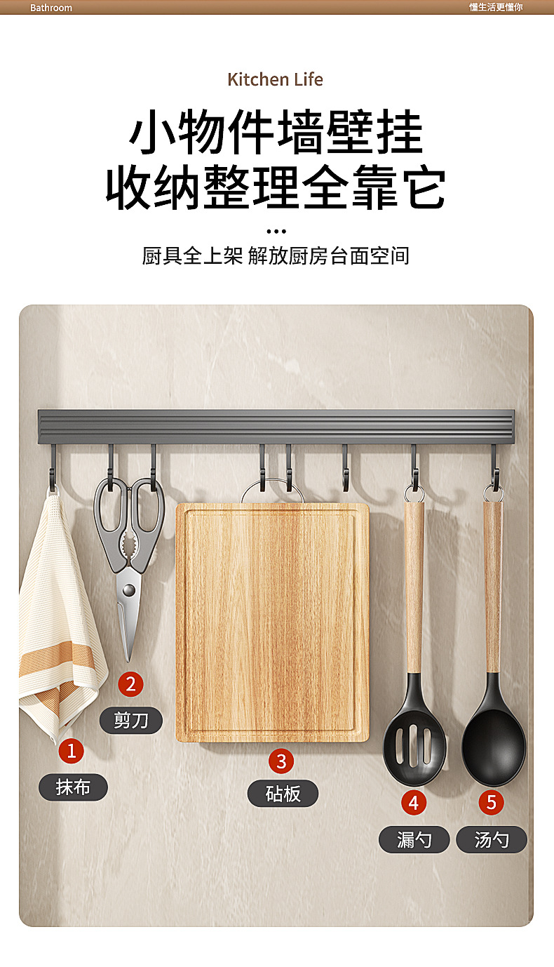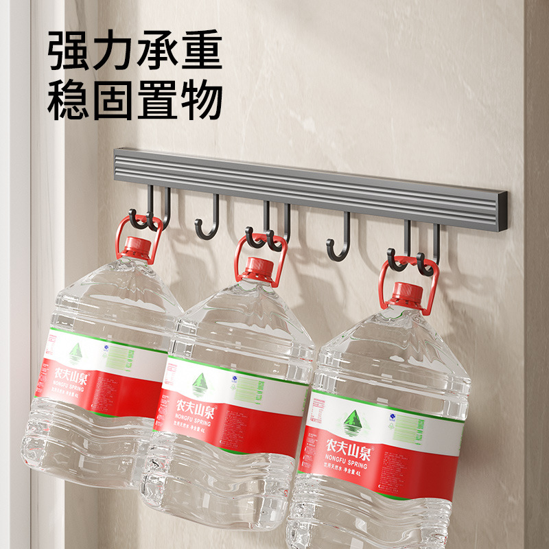 热卖厨房挂钩免打孔挂杆置物架太空铝锅铲勺子挂架活动排钩壁挂式收纳
