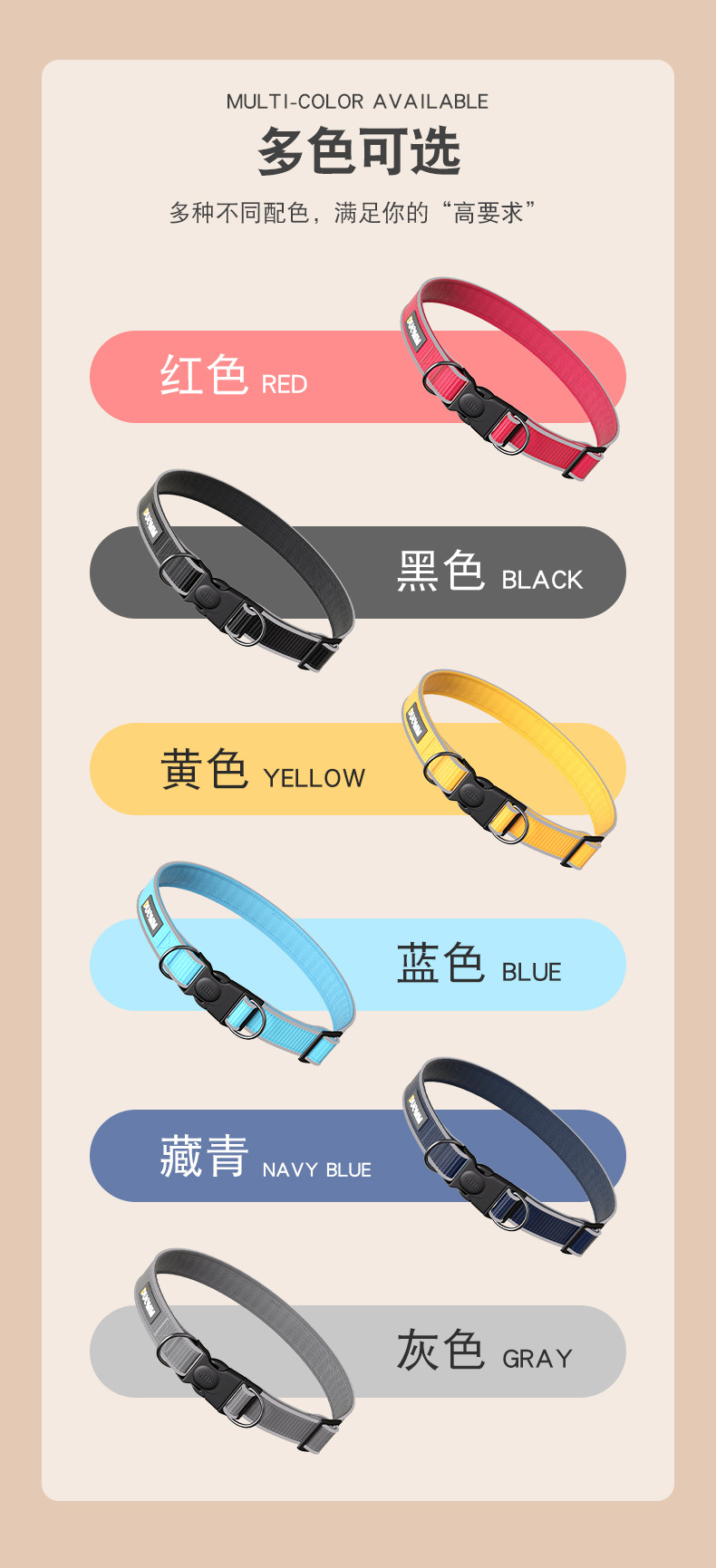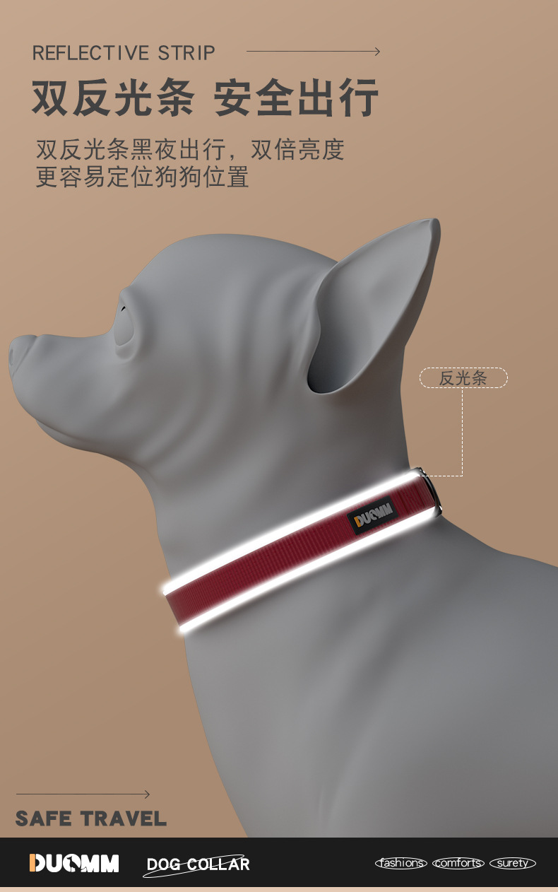 热卖新款热销跨境猫项圈 可调节款狗狗项圈 中大型犬反光防丢宠物项圈