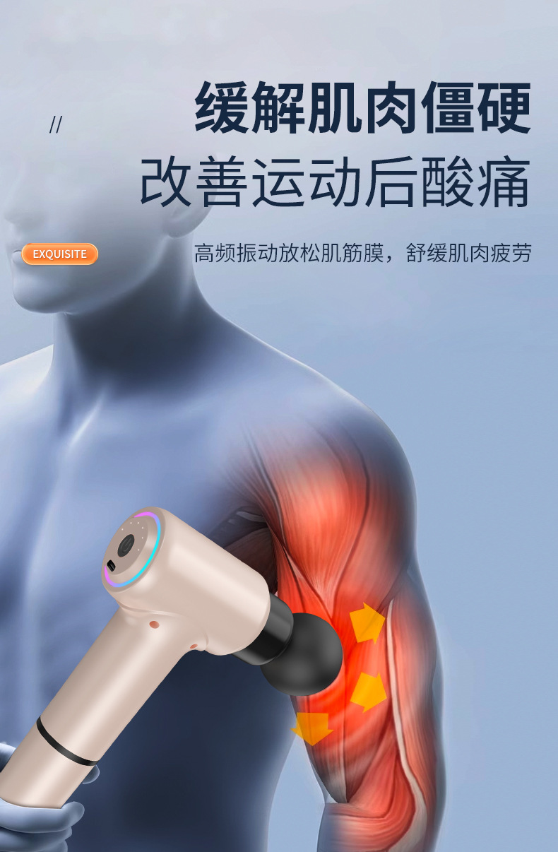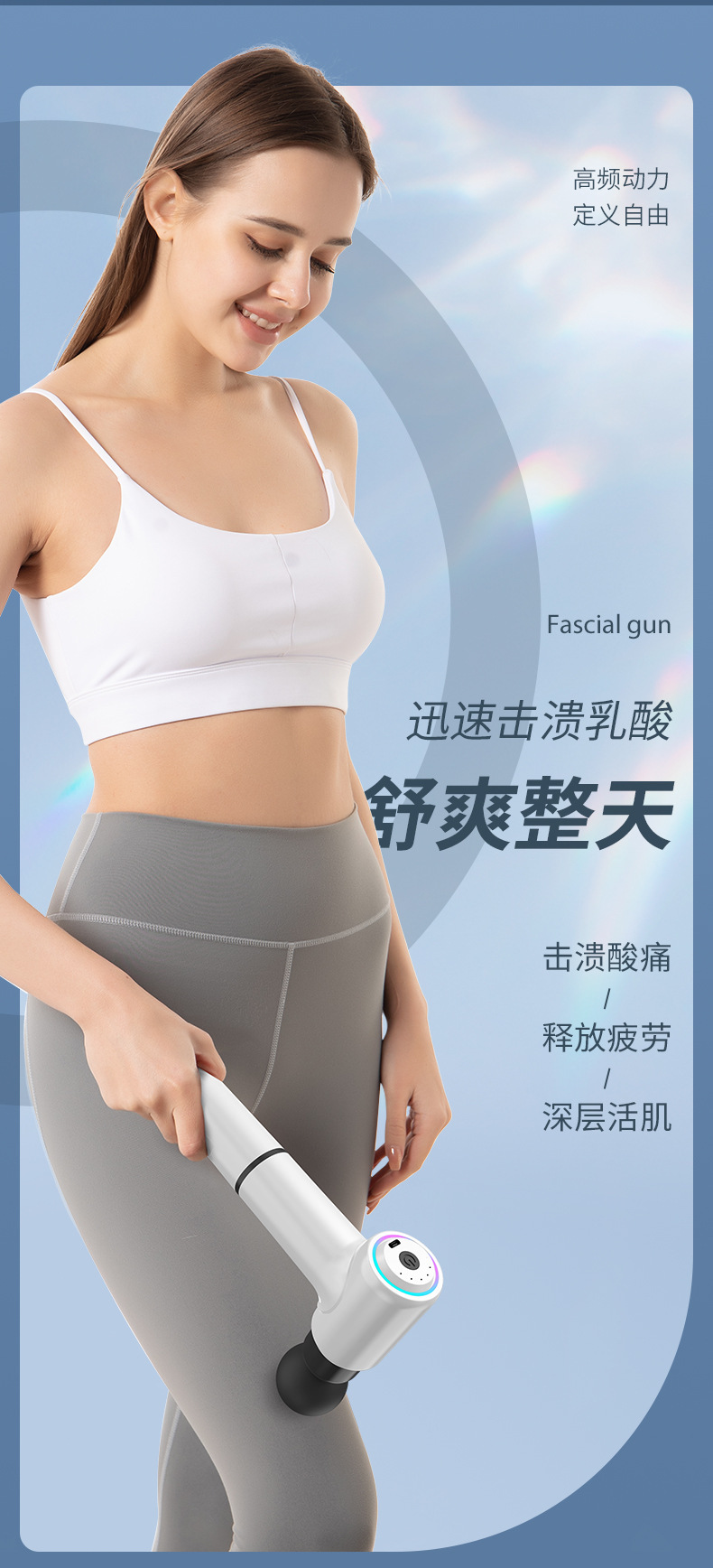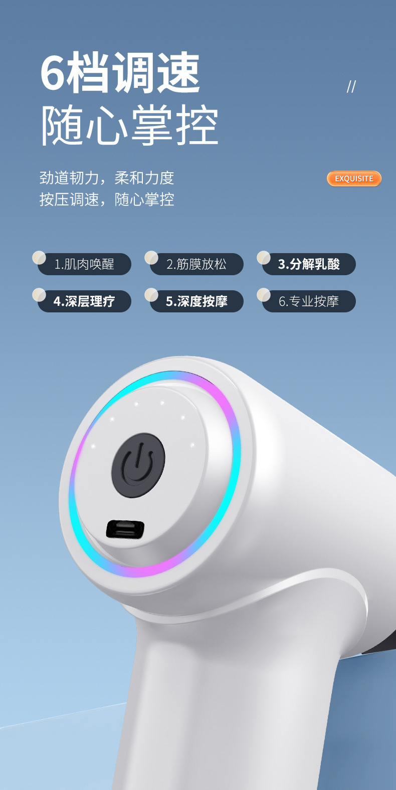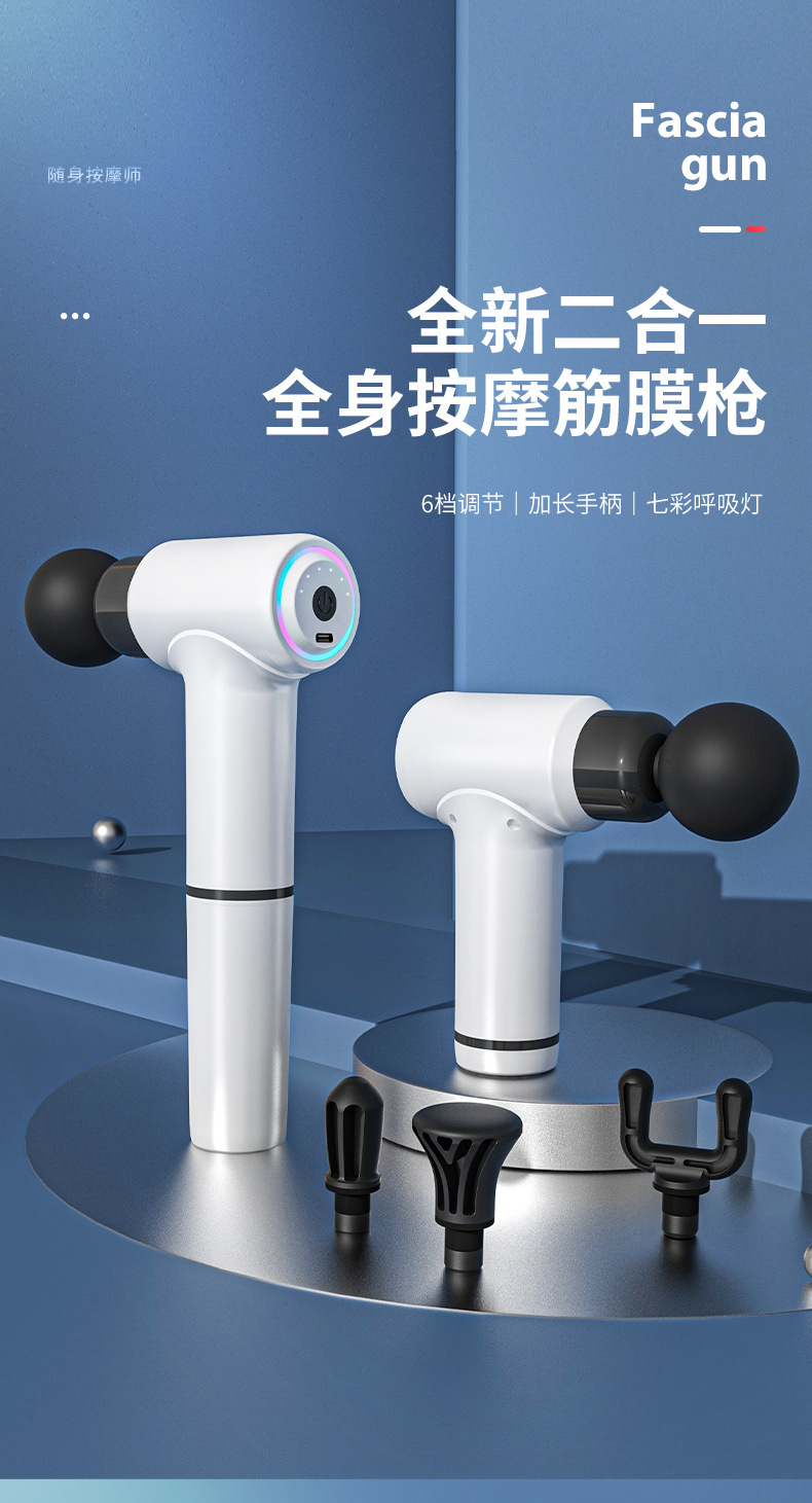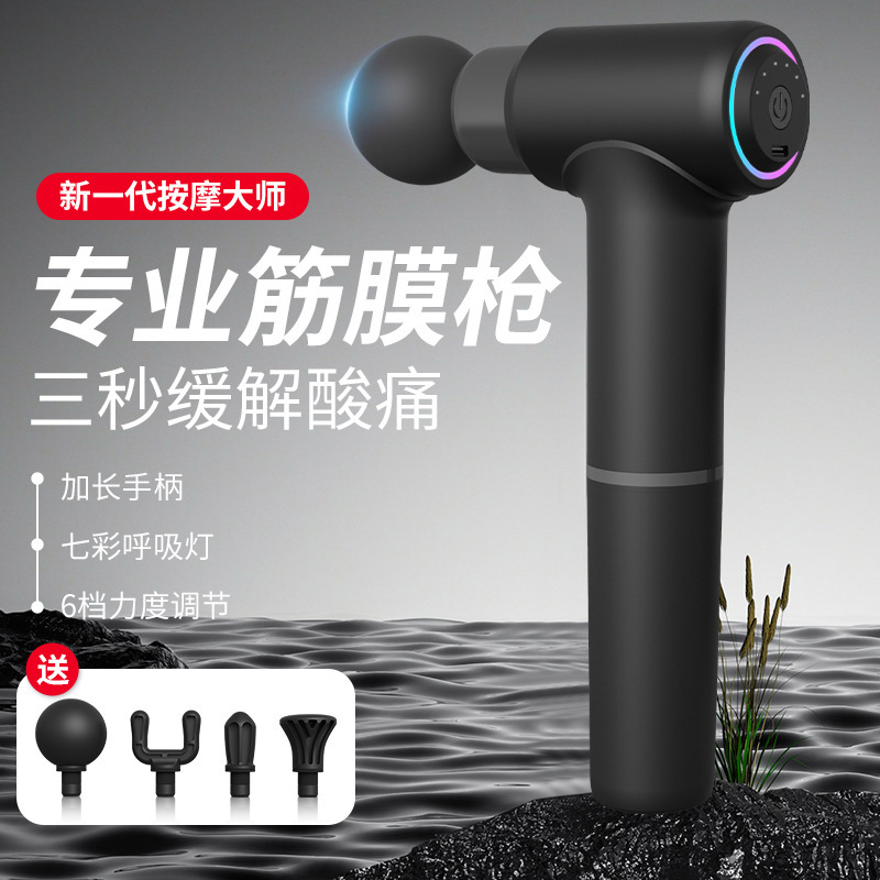 加长筋膜枪七彩呼吸灯电动按键款肌肉保健运动健身外贸专享HB-020