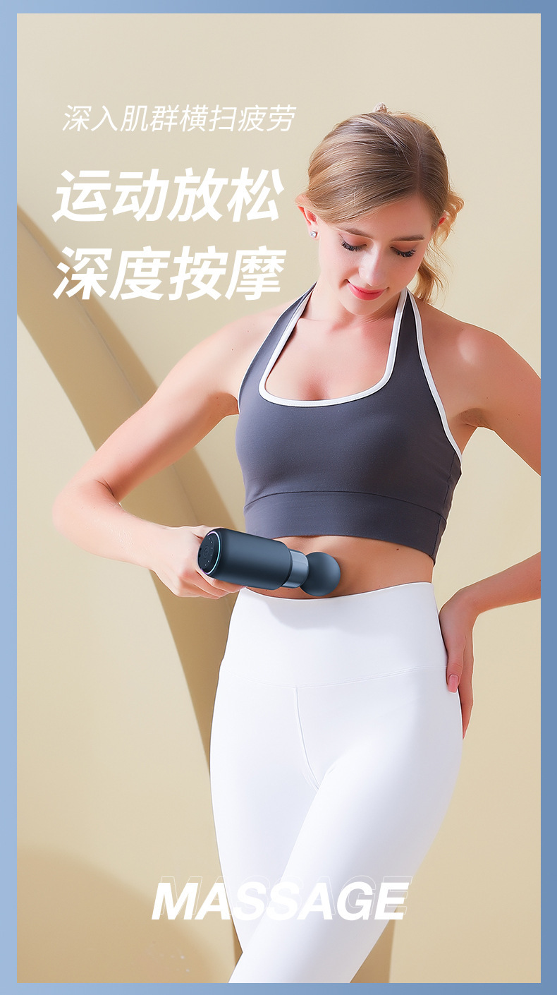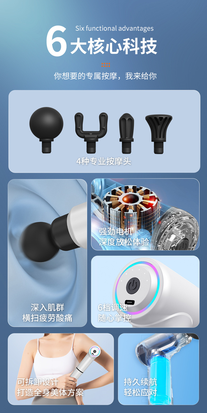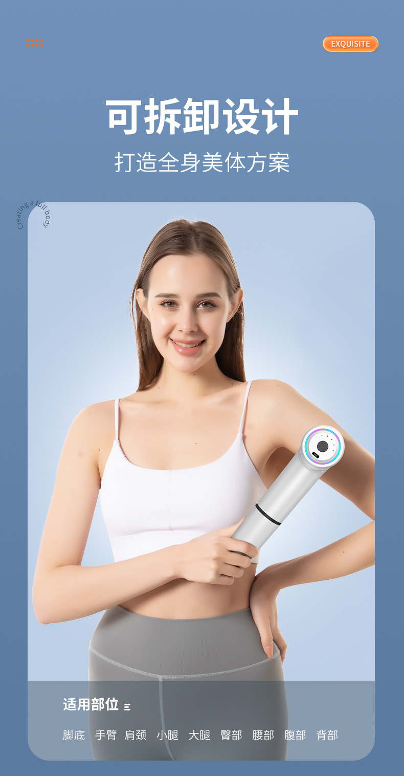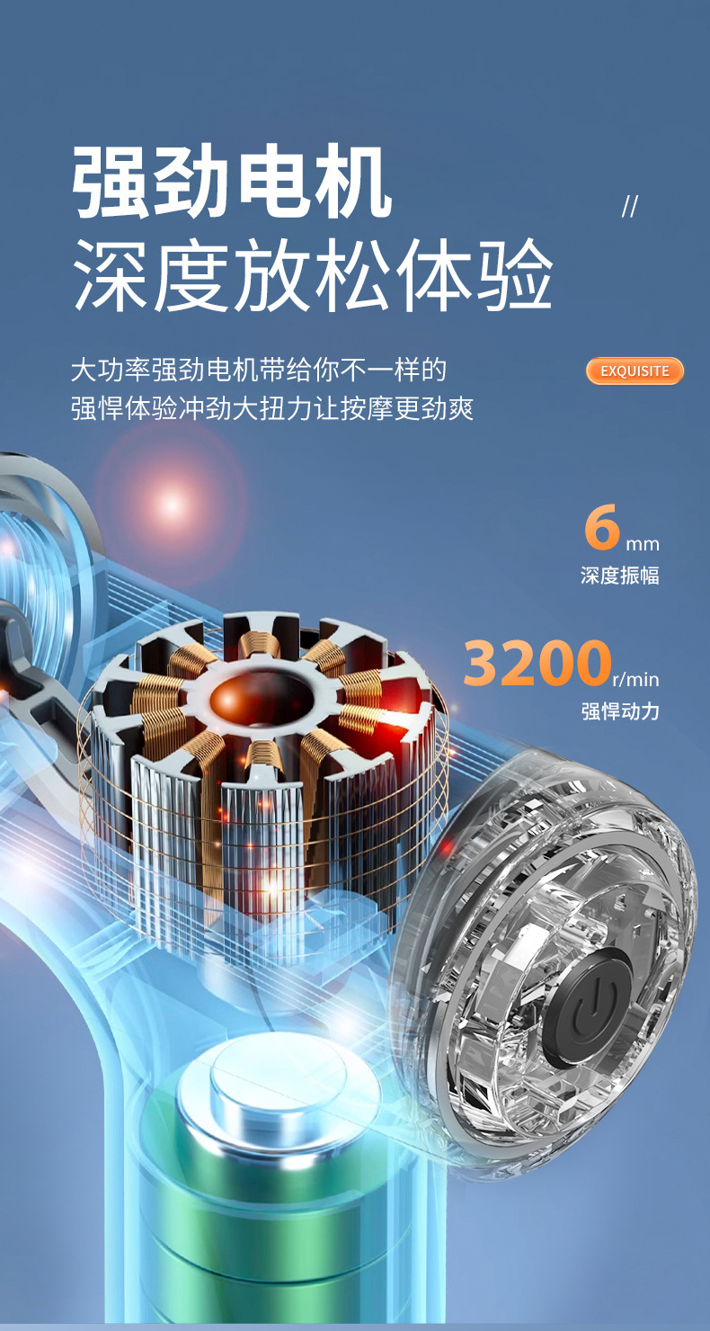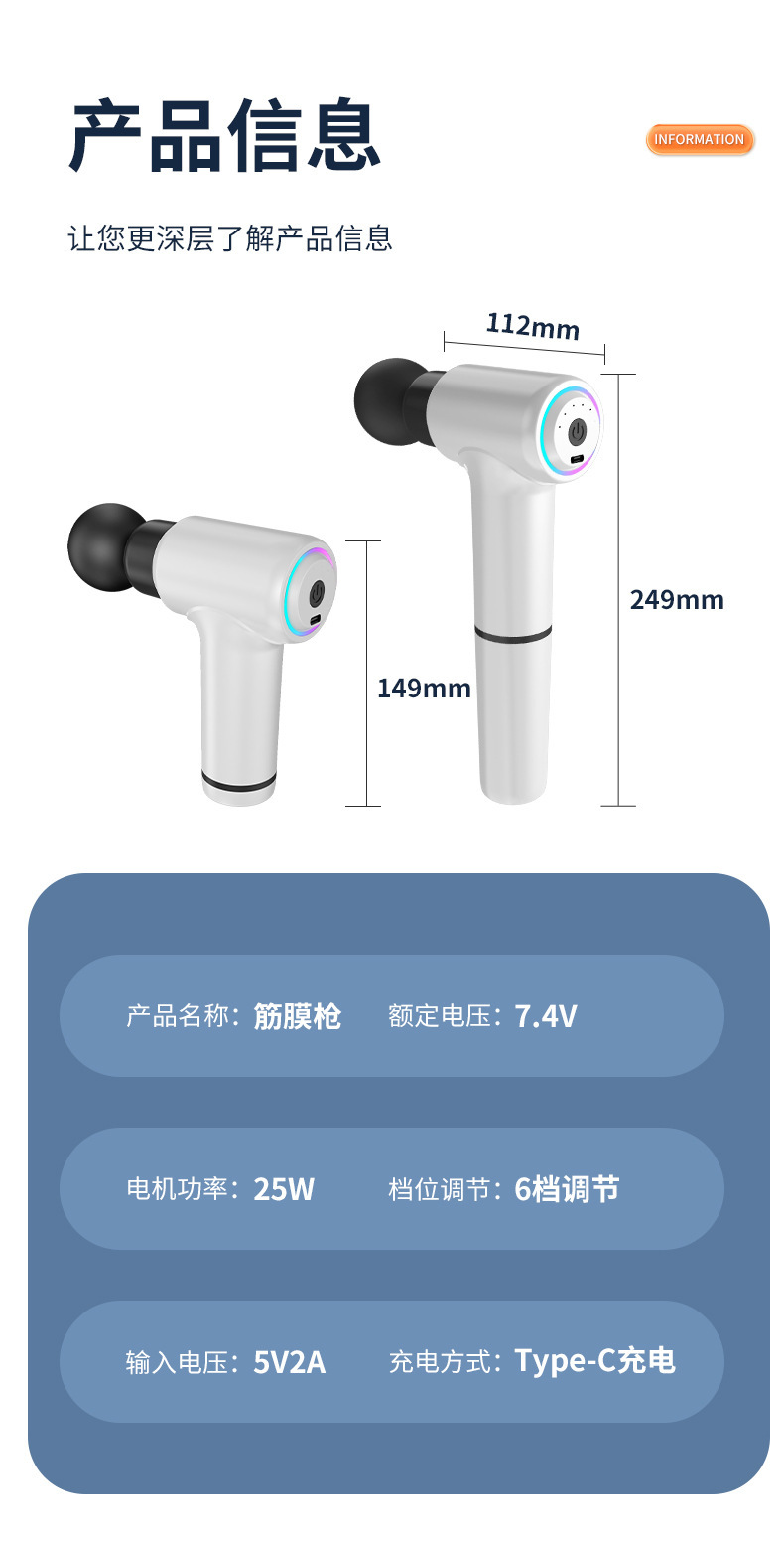 加长筋膜枪七彩呼吸灯电动按键款肌肉保健运动健身外贸专享HB-020