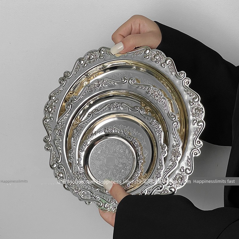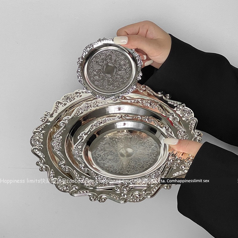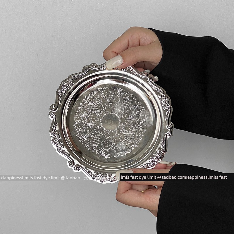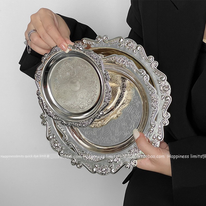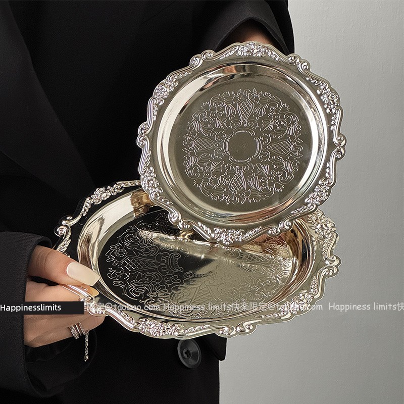 热卖ins复古雕花金属小托盘香薰蜡烛盘首饰摆件宫廷风咖啡厅拍照道具