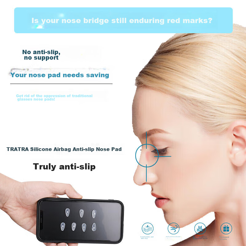 Features: Anti-slip, breathable, pressure-relieving, suitable for oily skin, low nose bridge, heavy glasses frames