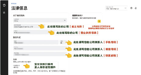 第二步:按照页面要求填写相应公司资料并上传营业执照扫描件及法人身份证正反面扫描件
