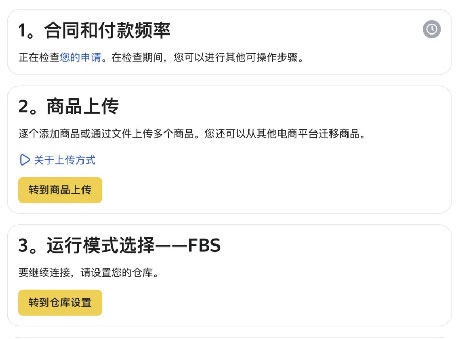 审核期间,可以同步进行上架产品(步骤2),以及仓库设置(步骤3)Yandex Market平台会根据店铺前3个步骤的完善情况,相对应地开通上线营销权限。