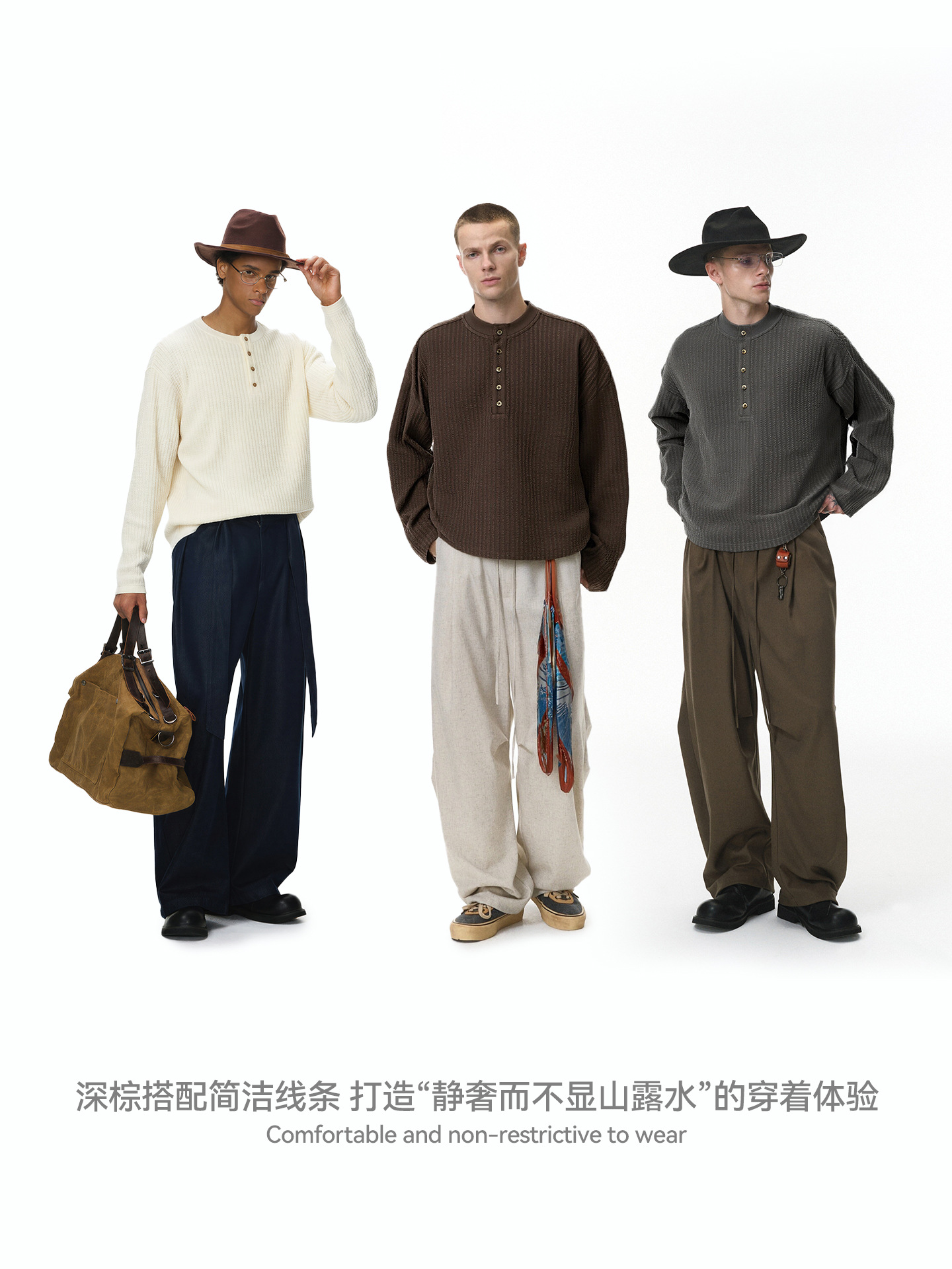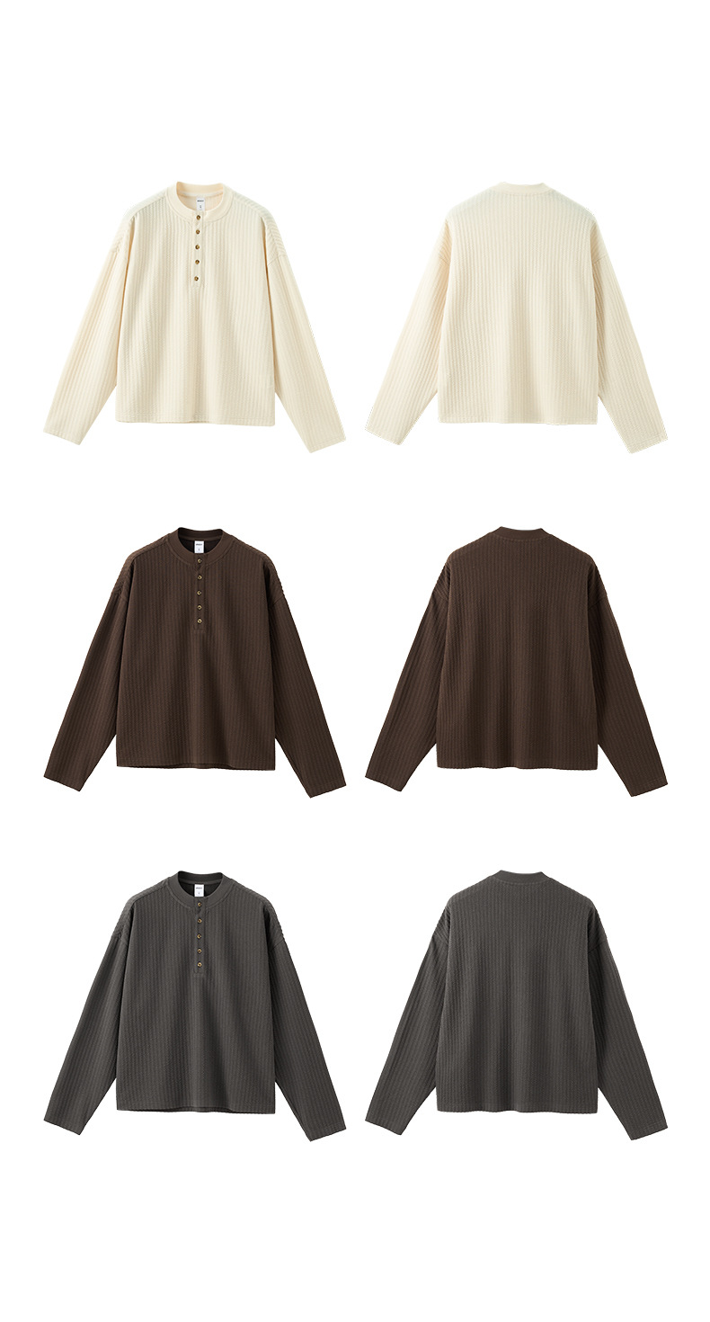 热卖捷展男装|老钱亨利领长袖T恤25秋季新品潮牌休闲慵懒纯色男式上衣