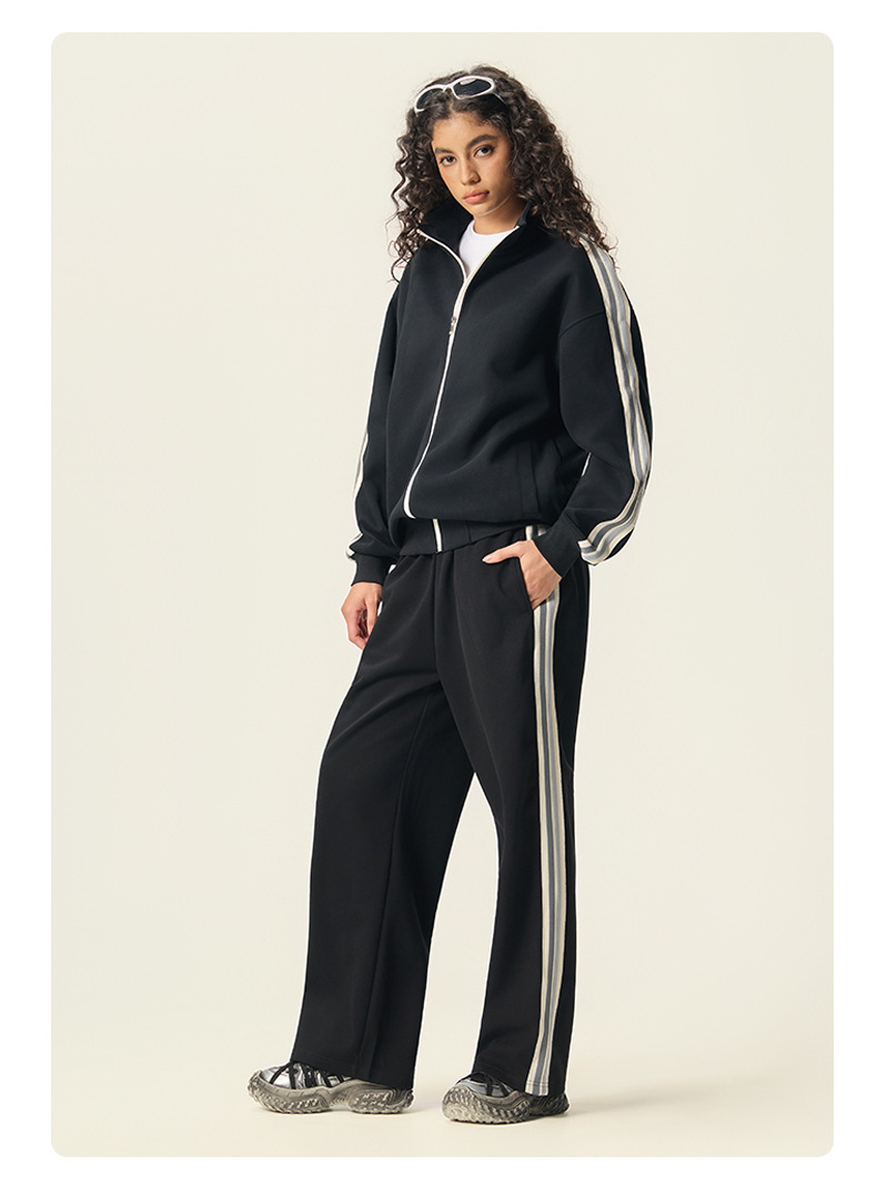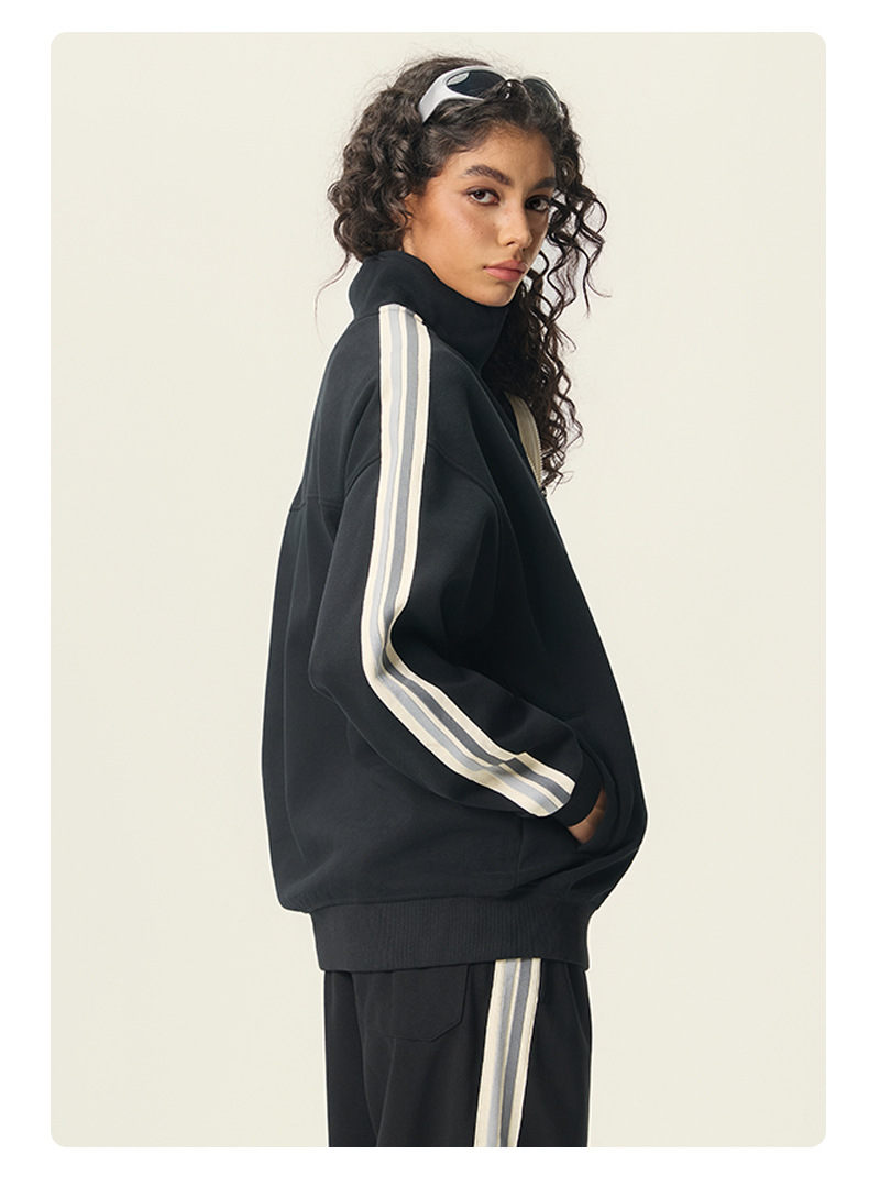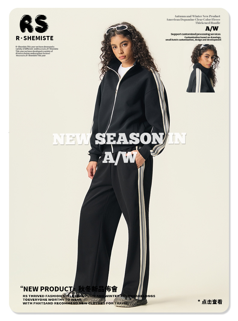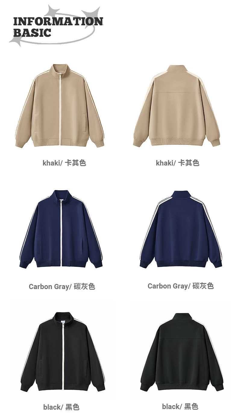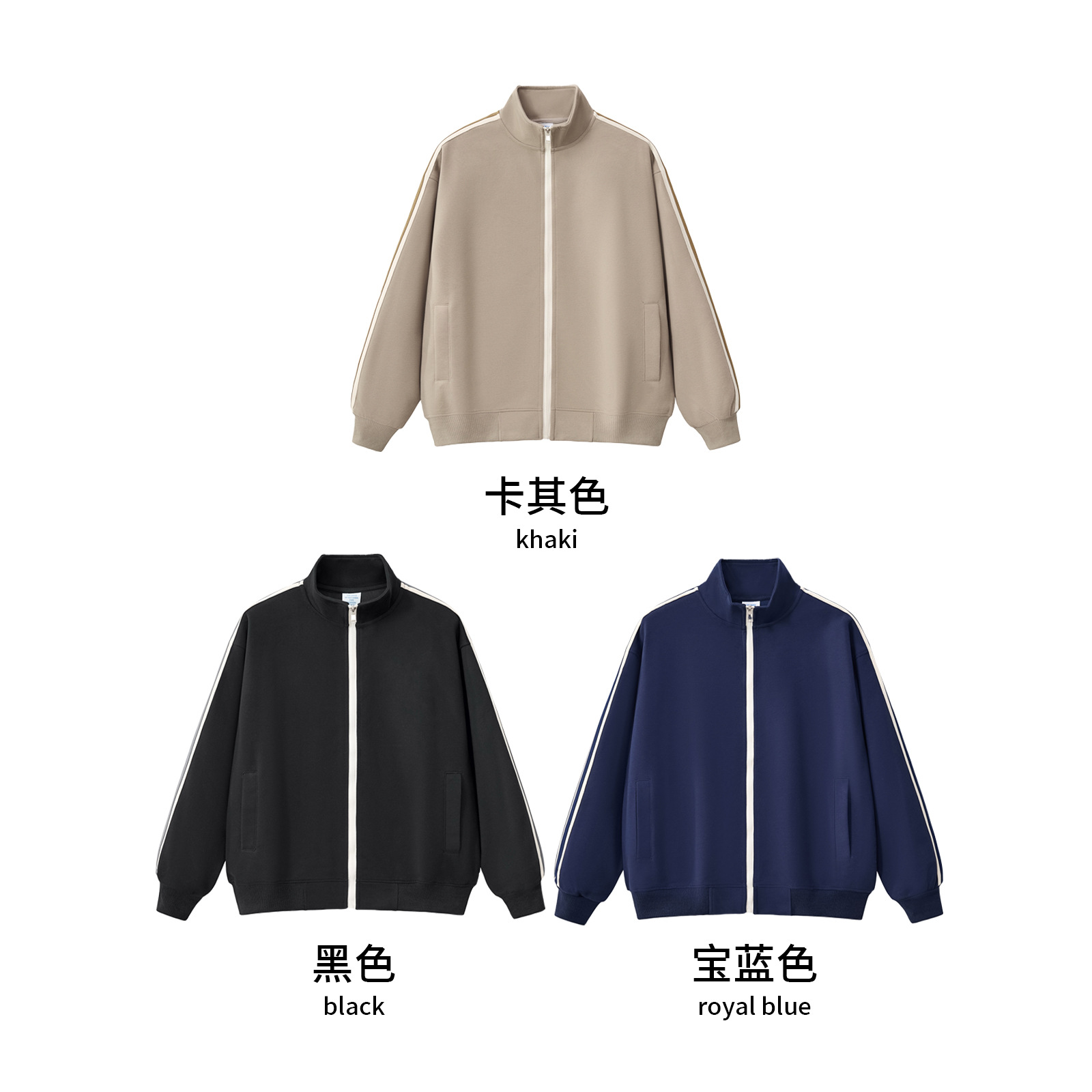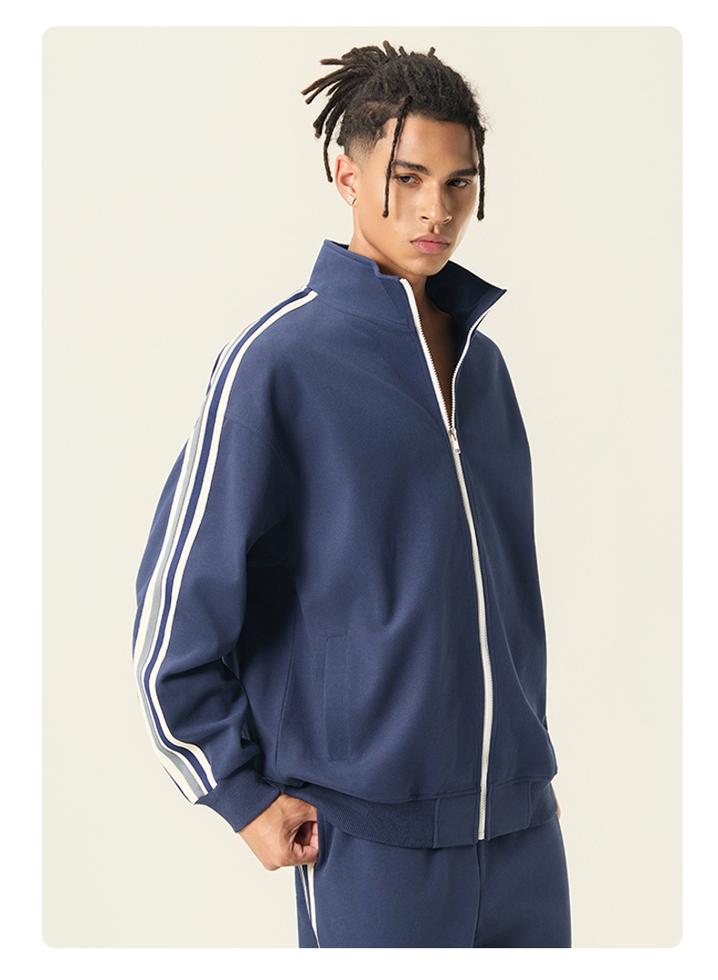 热卖RS男装|跨境340G条纹休闲拉链夹克外套男潮牌学院风男士外套夹克