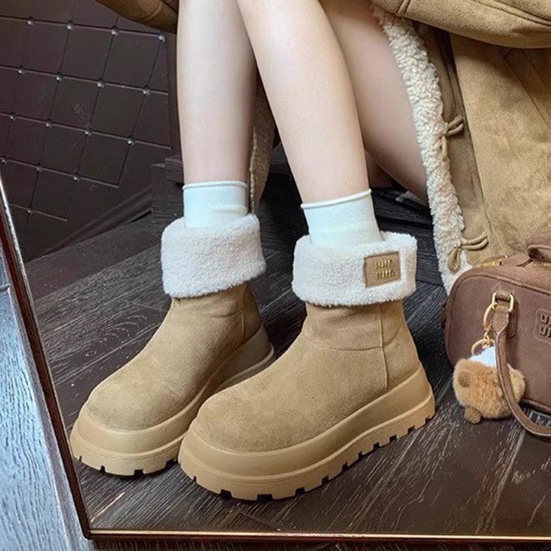 牛皮版~2025新款厚底一脚蹬棉鞋百搭低帮短靴子加绒加厚雪地靴女