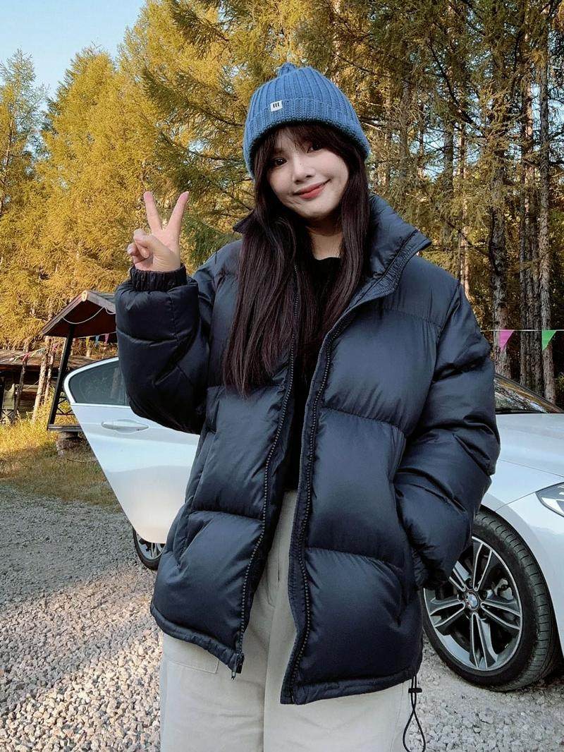花田衣亩羽绒服女2025年新款冬立领加厚中款遮屁股韩版面包服外套