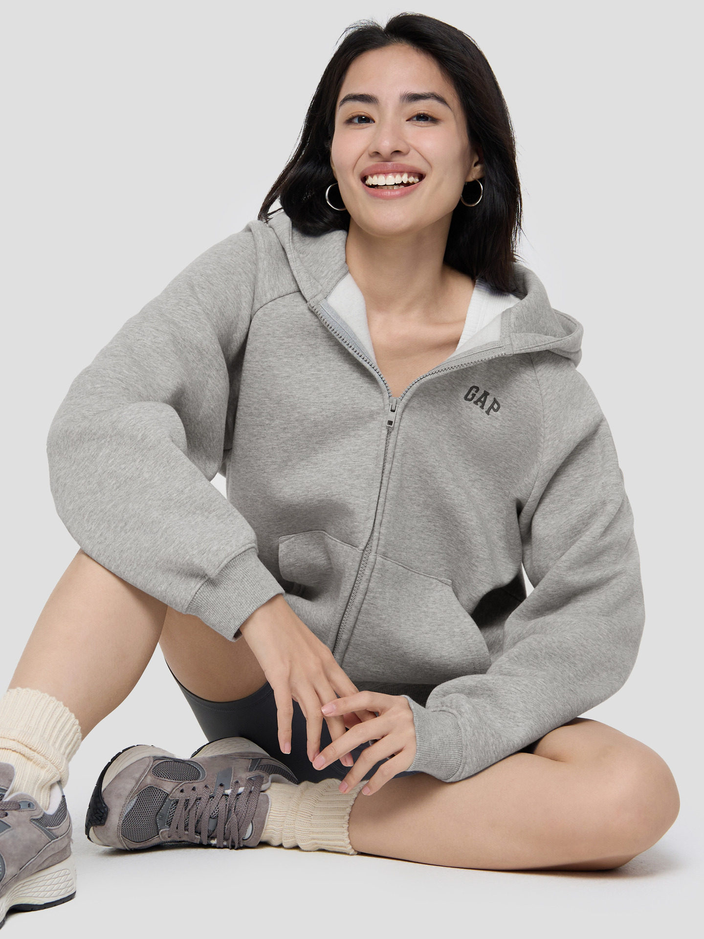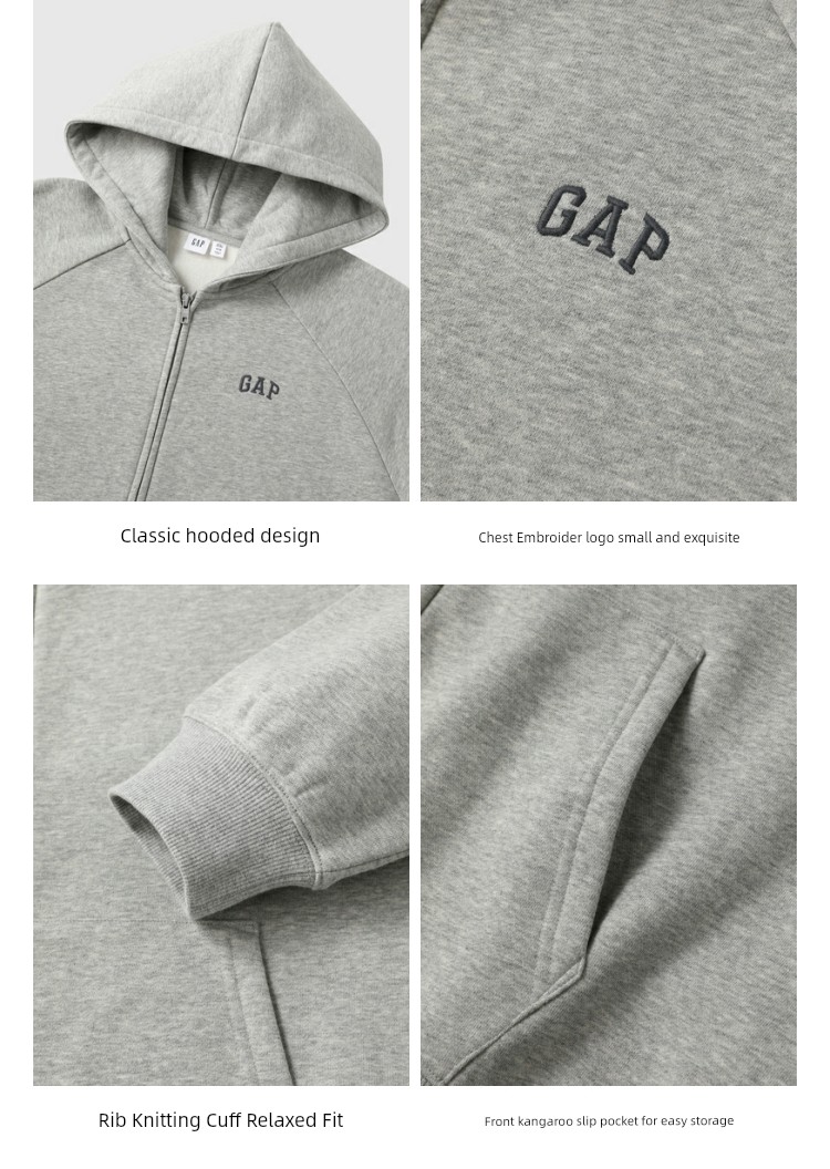 热卖【成毅代言】Gap男女装2025秋季款logo抓绒插肩袖连帽卫衣786888