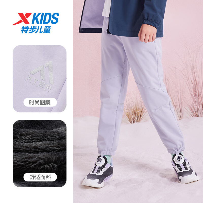 热卖特步(XTEP)儿童童装男女童摇粒绒锁温保暖弹力长裤 罗兰紫 130cm