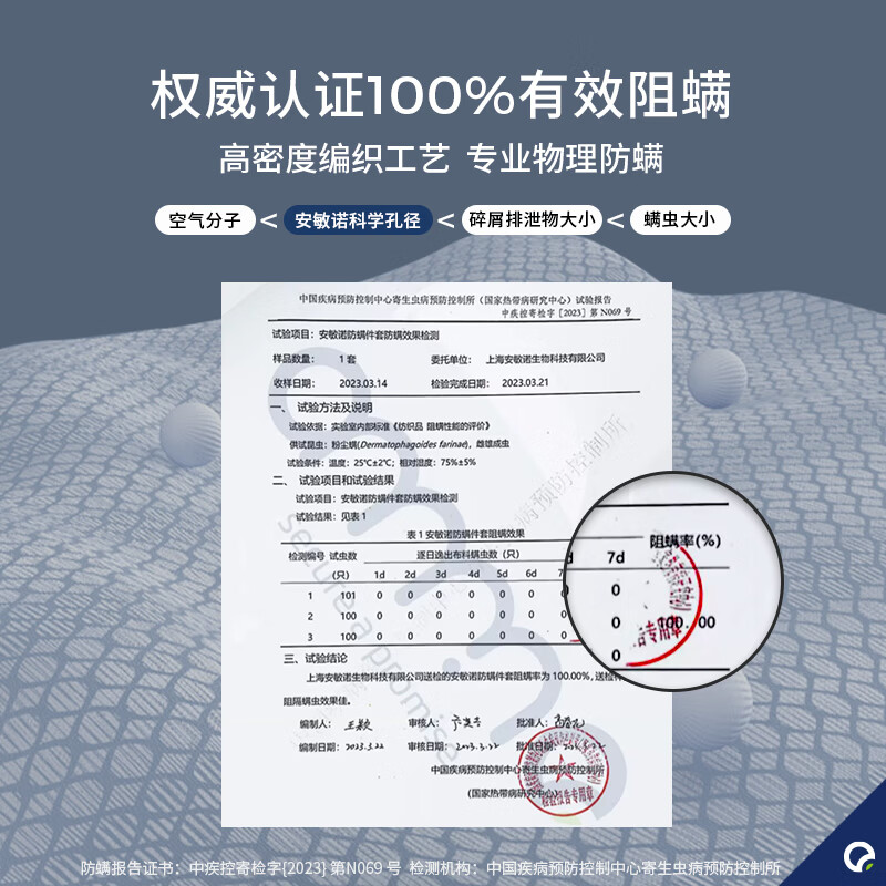 热卖安敏诺(Anmino)100%防螨四件套AB面纯棉轻绒感微磨毛A类床上用品防尘螨过敏 1.5m床笠款