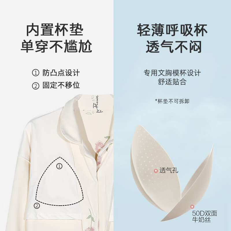 热卖芬腾可安新款睡衣女士春秋款纯棉长袖薄款高级感翻领简约款家居服两件套装