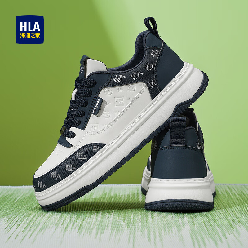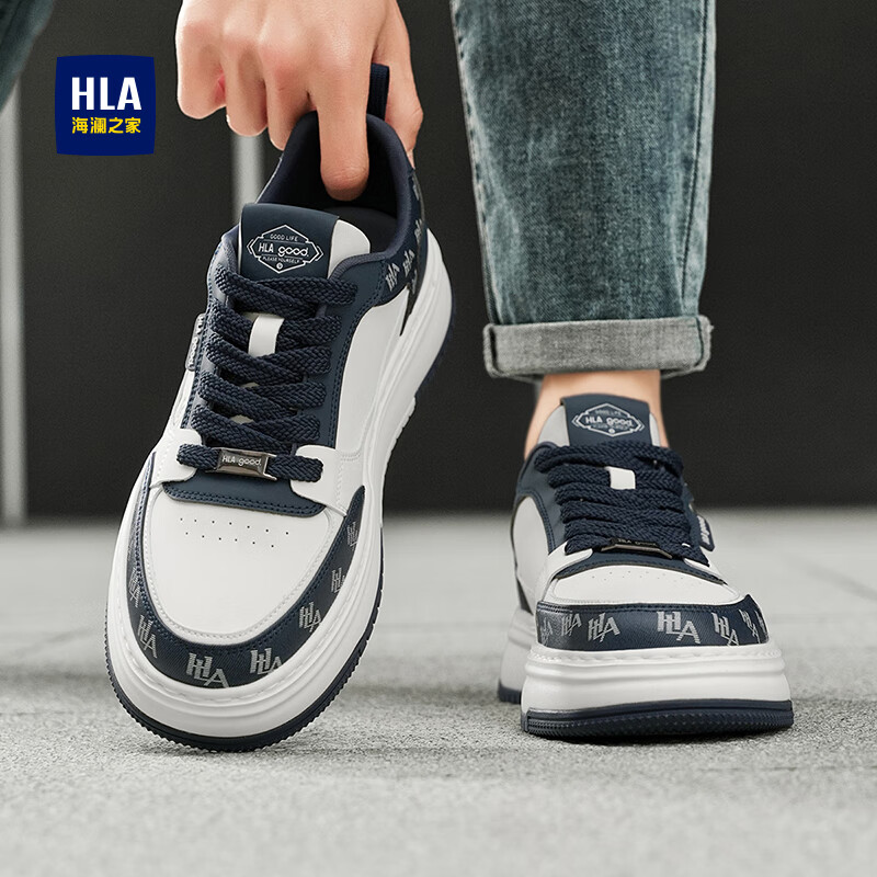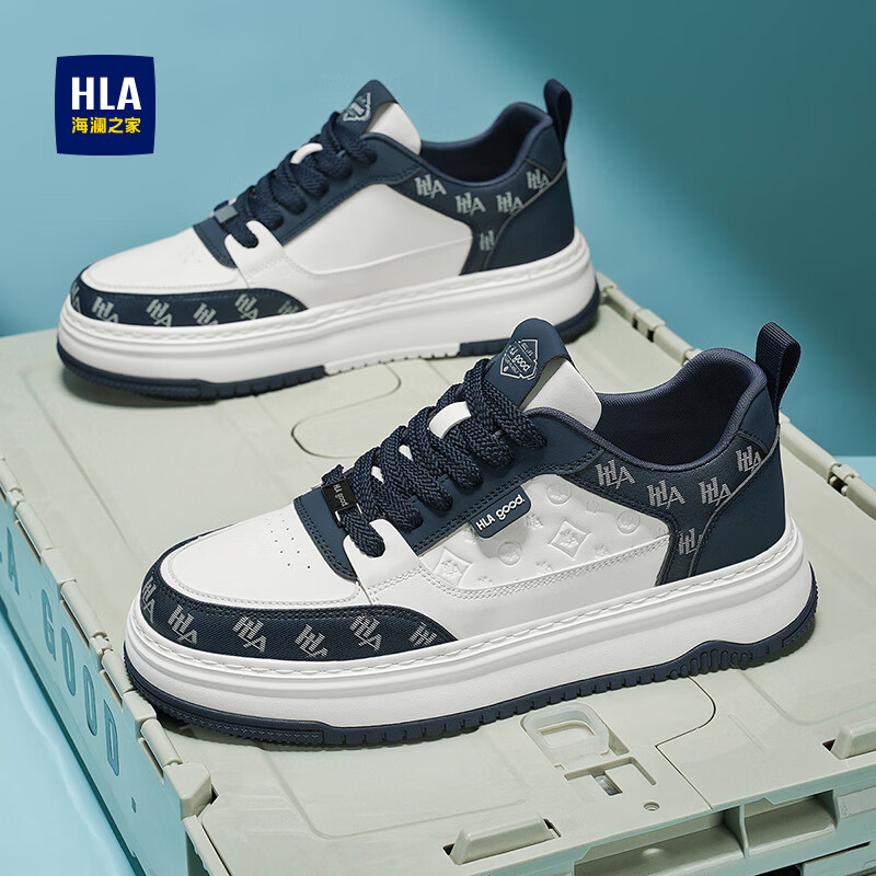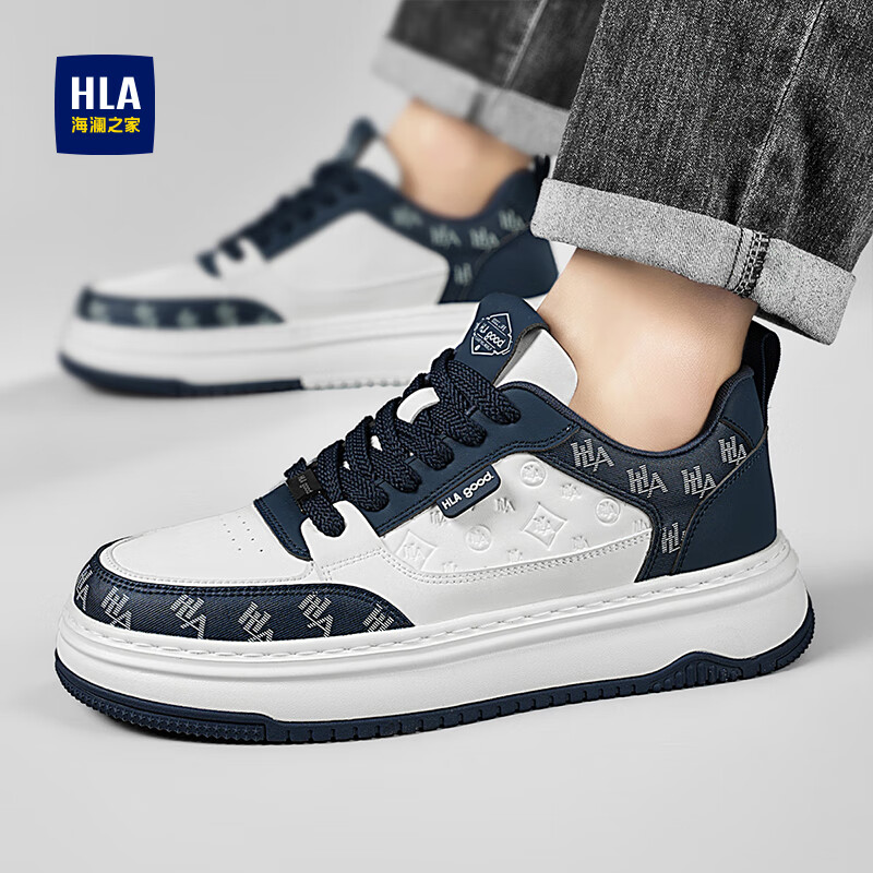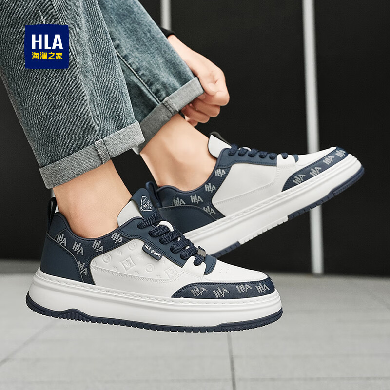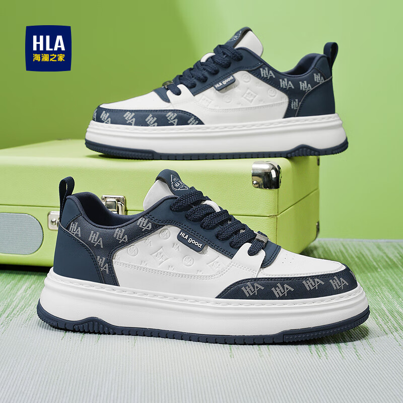 热卖海澜之家HLA新年礼物板鞋厚底男鞋运动休闲鞋潮流拼色潮鞋 F204白蓝色40