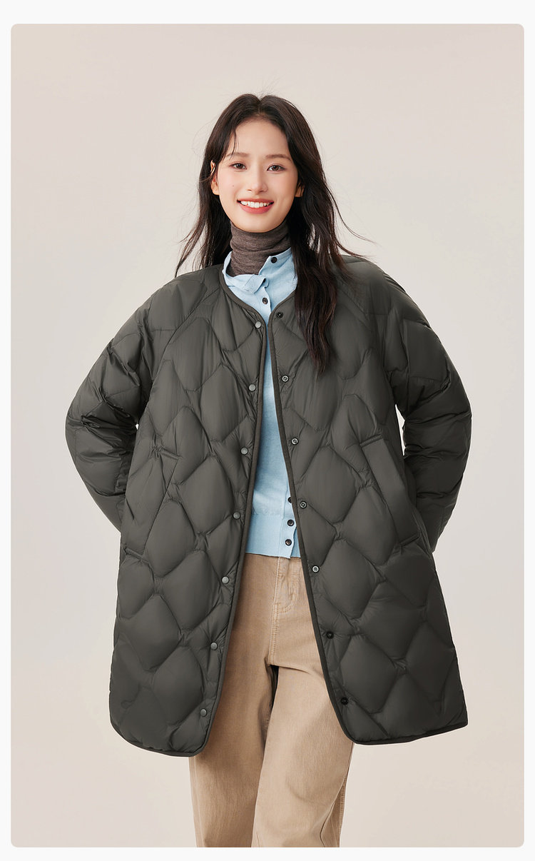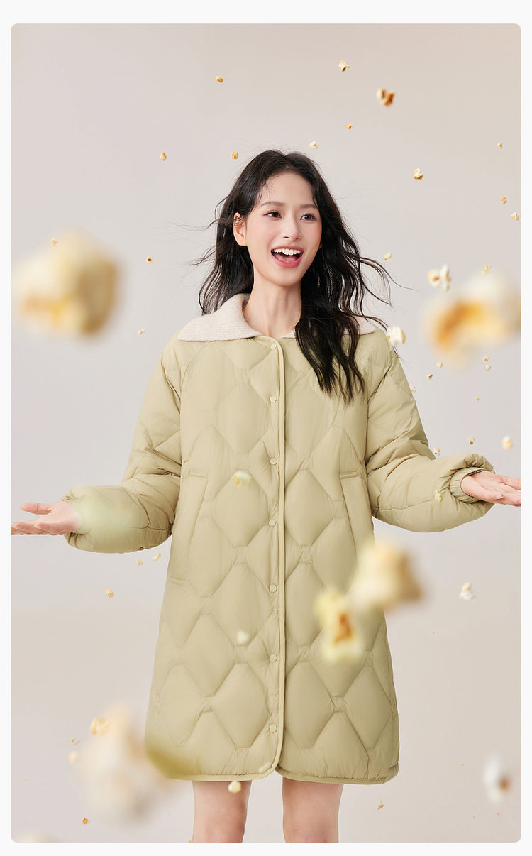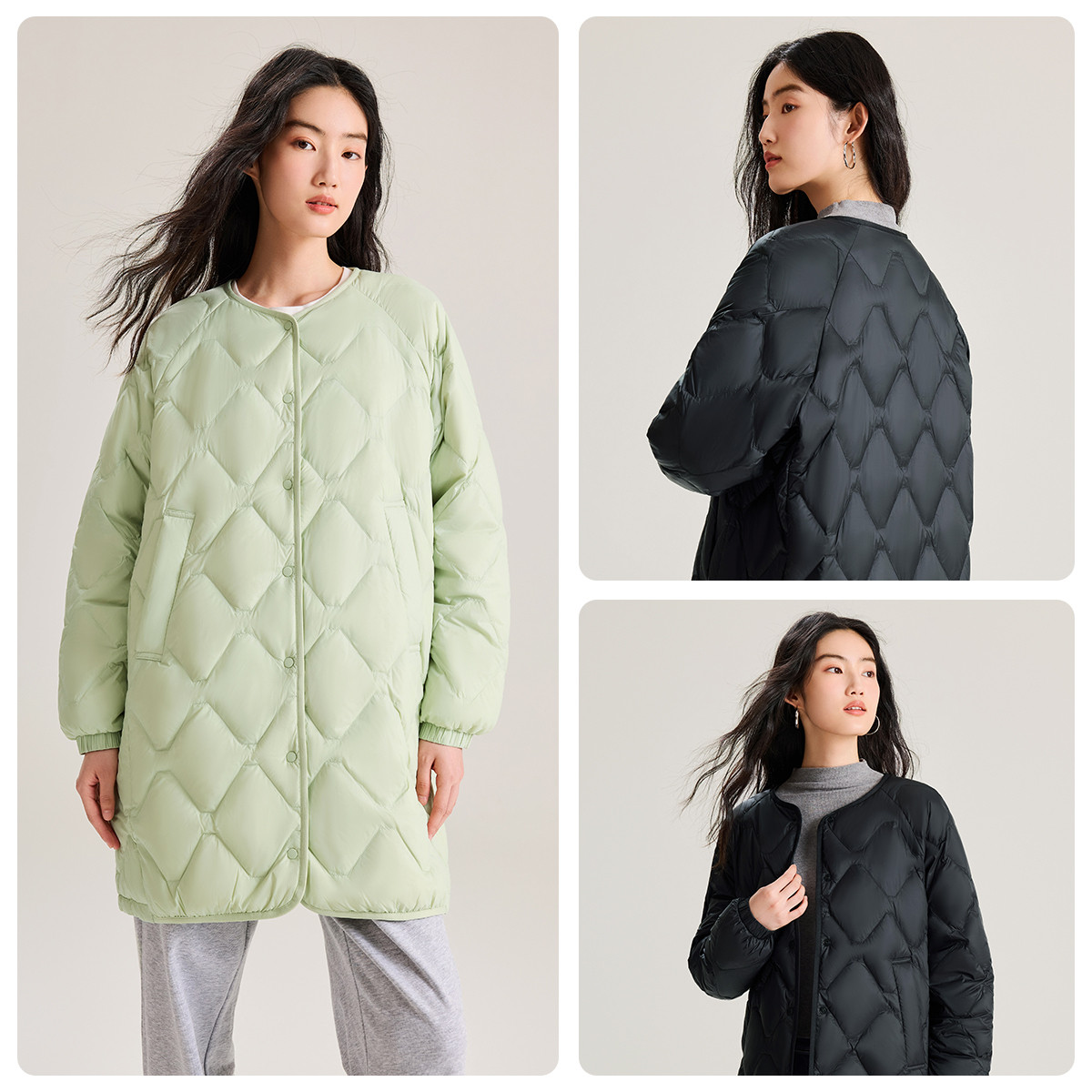 热卖雪中飞2025秋冬新款女士中长款菱格羽绒服时尚轻盈潮流外套百搭
