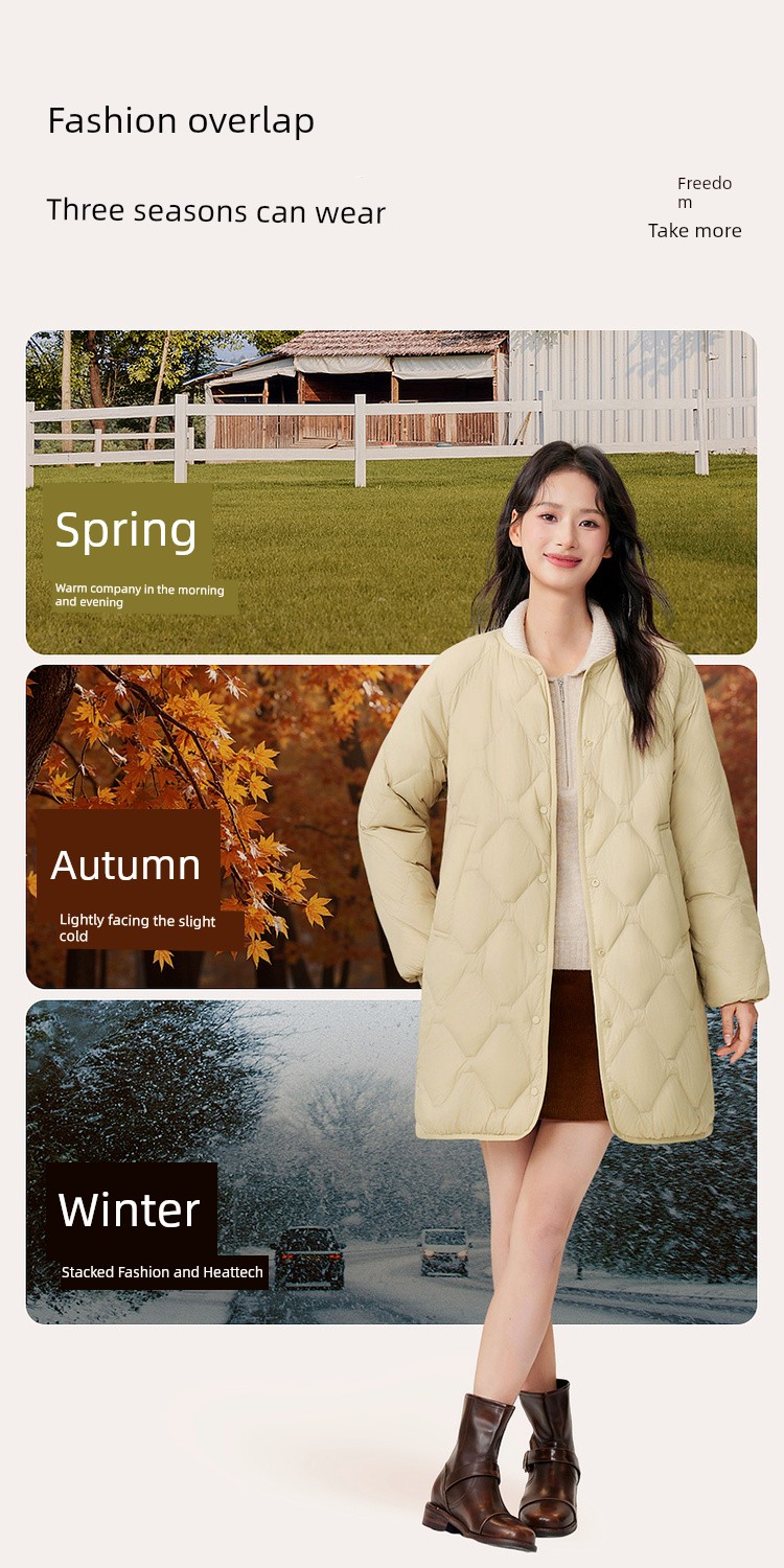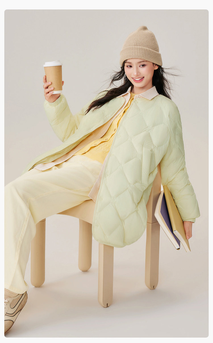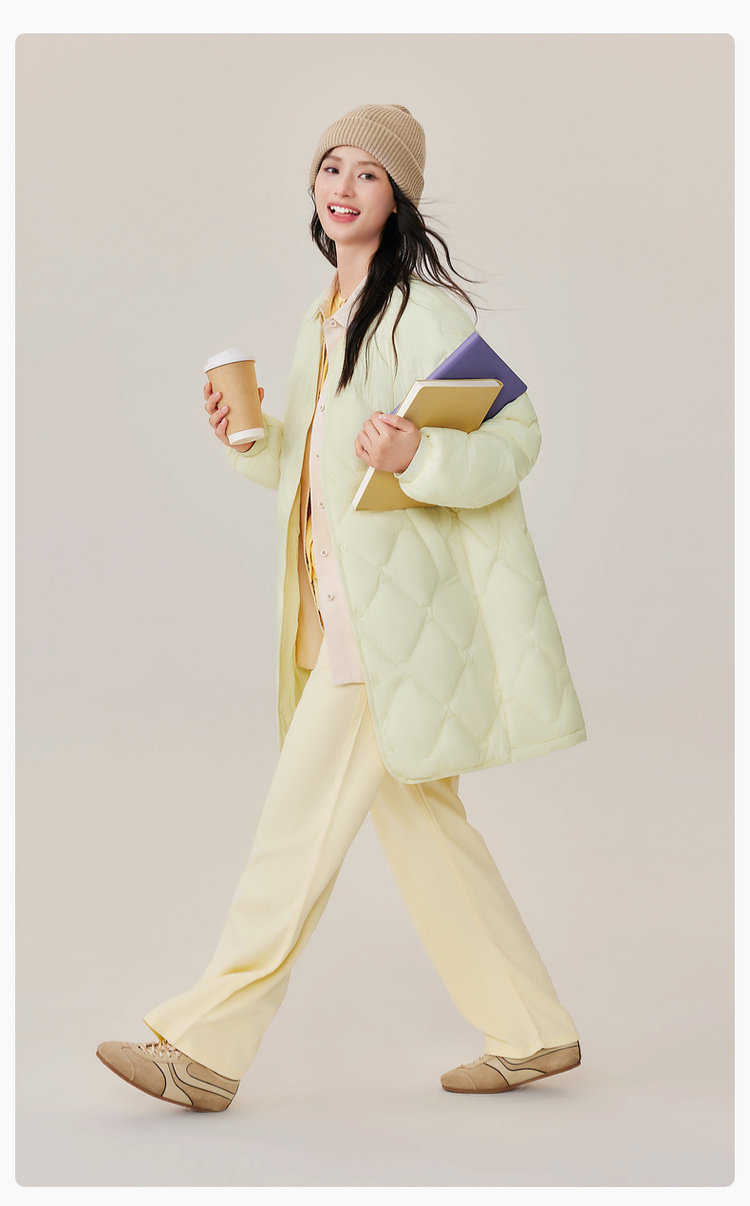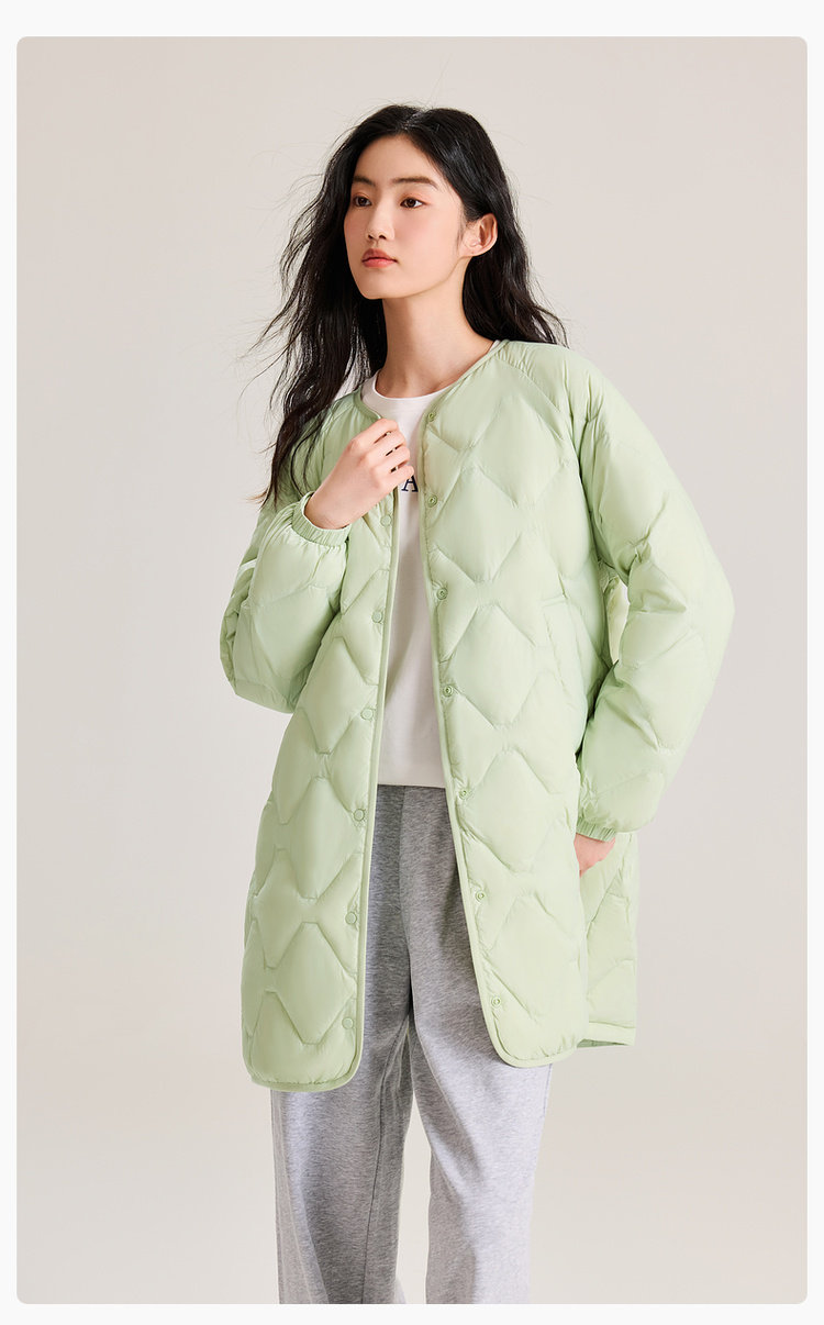 热卖雪中飞2025秋冬新款女士中长款菱格羽绒服时尚轻盈潮流外套百搭