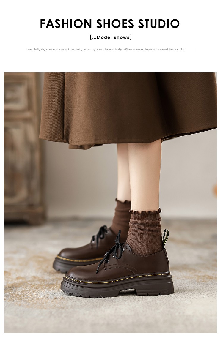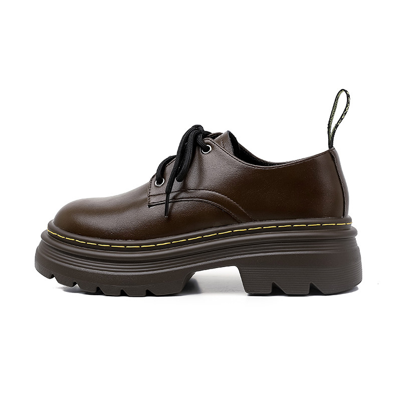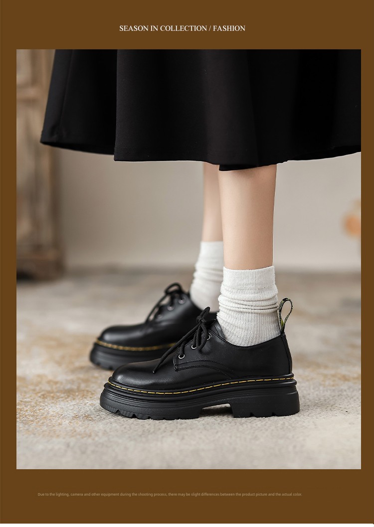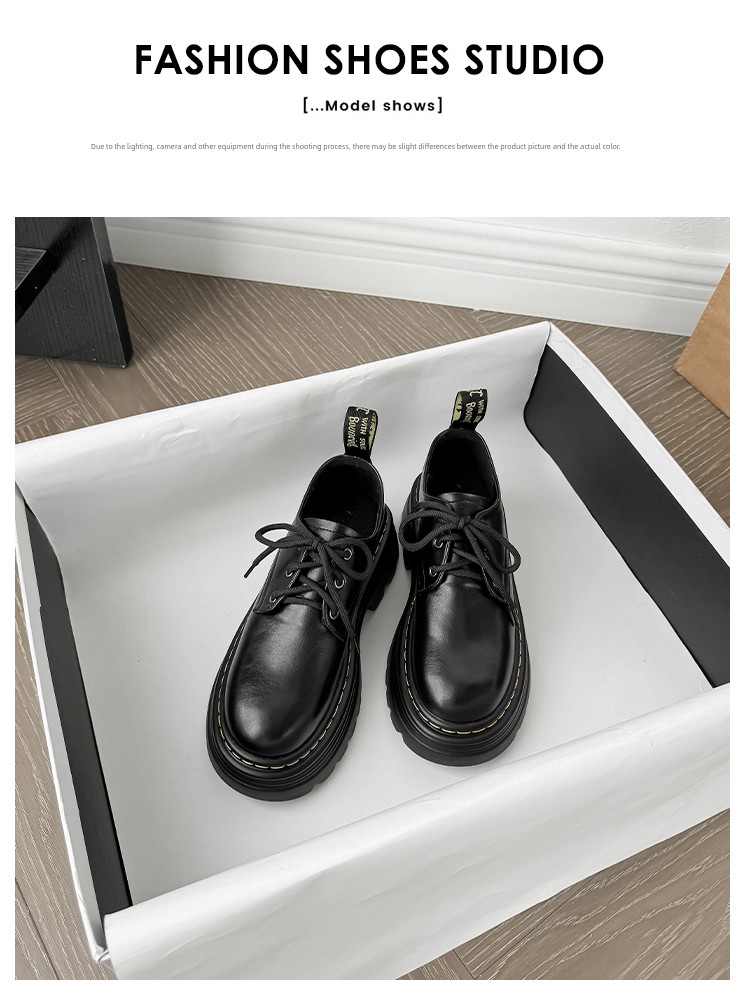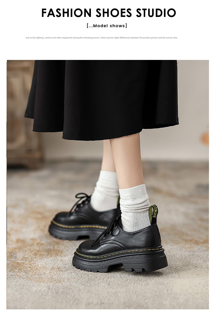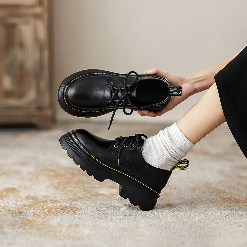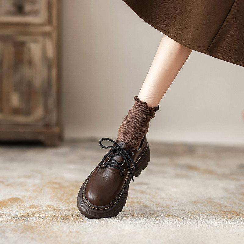 热卖软牛皮~厚底小皮鞋女2025秋季新款英伦风学院系带牛津鞋松糕单鞋