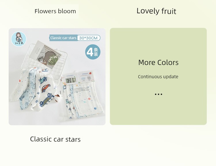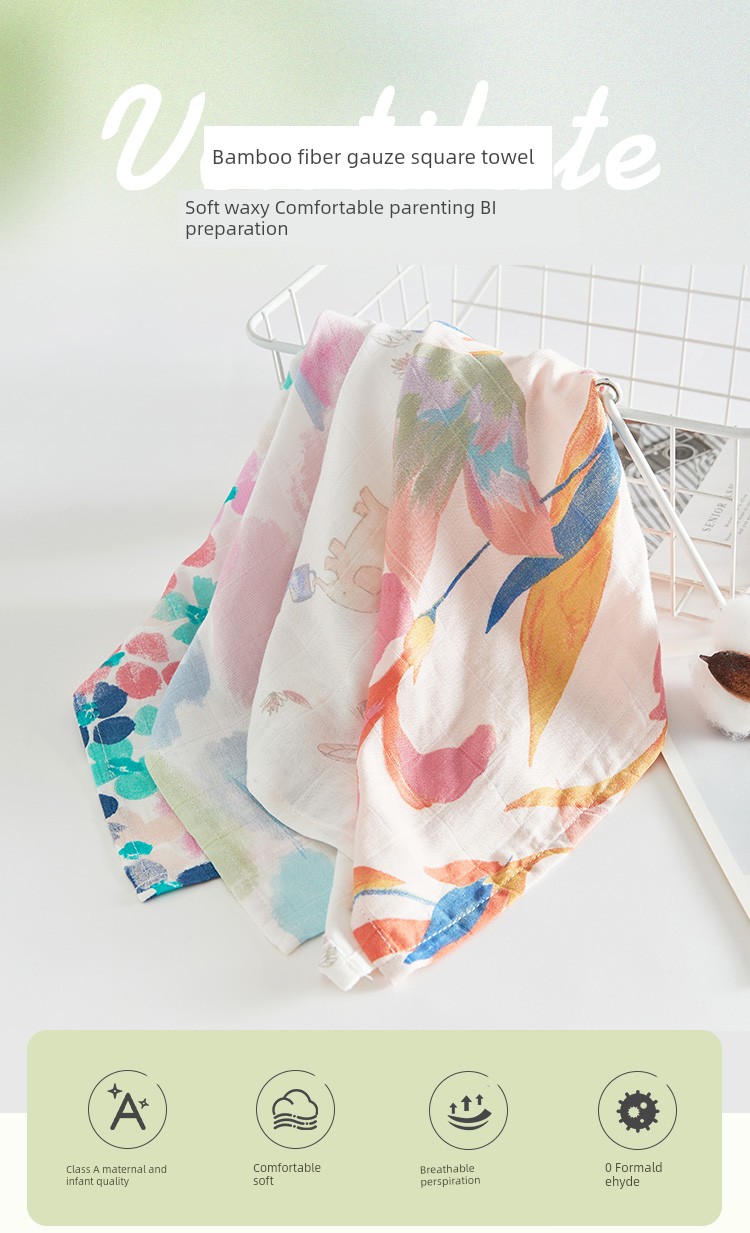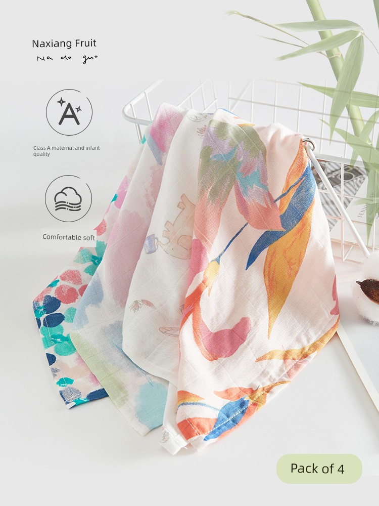 热卖纳多果口水巾婴儿小方巾新生儿竹纤维手帕洗脸宝宝纱布毛巾4条装