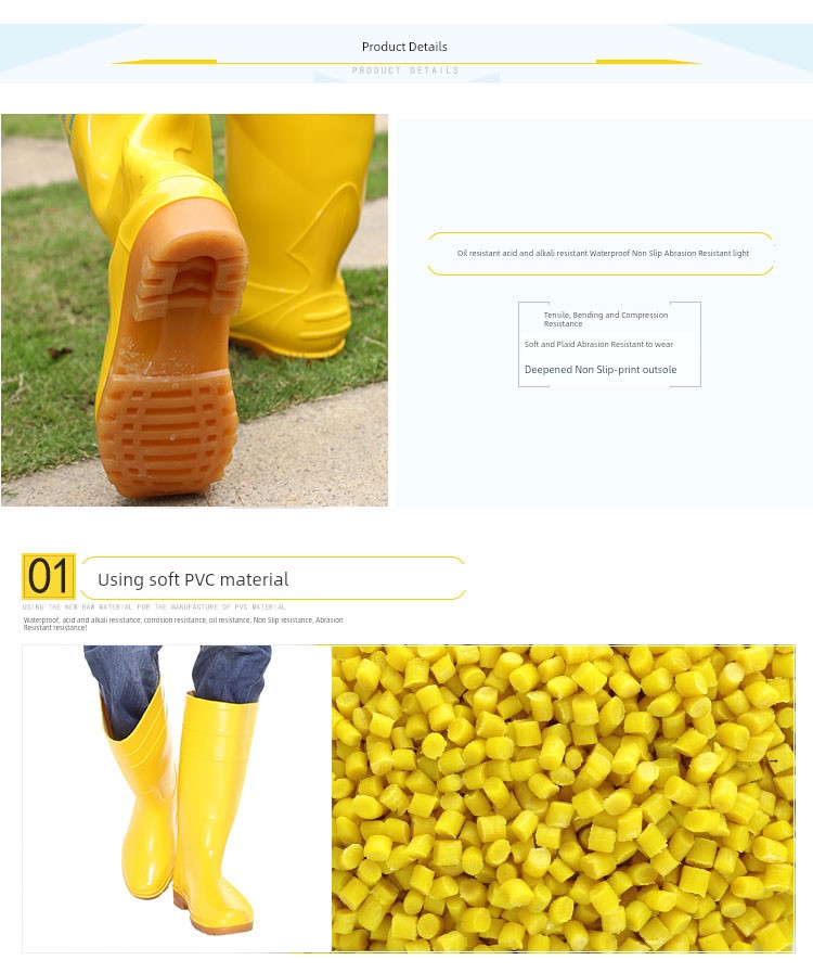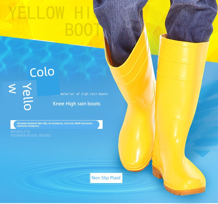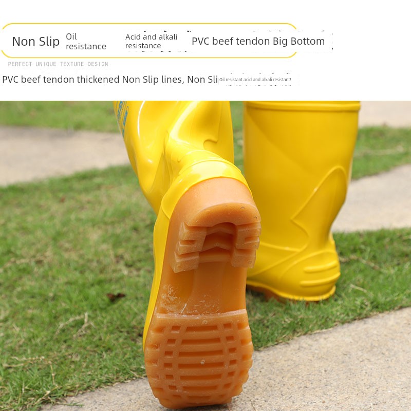 热卖男女食品卫生靴高筒黄色雨靴耐油耐酸碱防滑雨鞋食品水产养殖雨靴