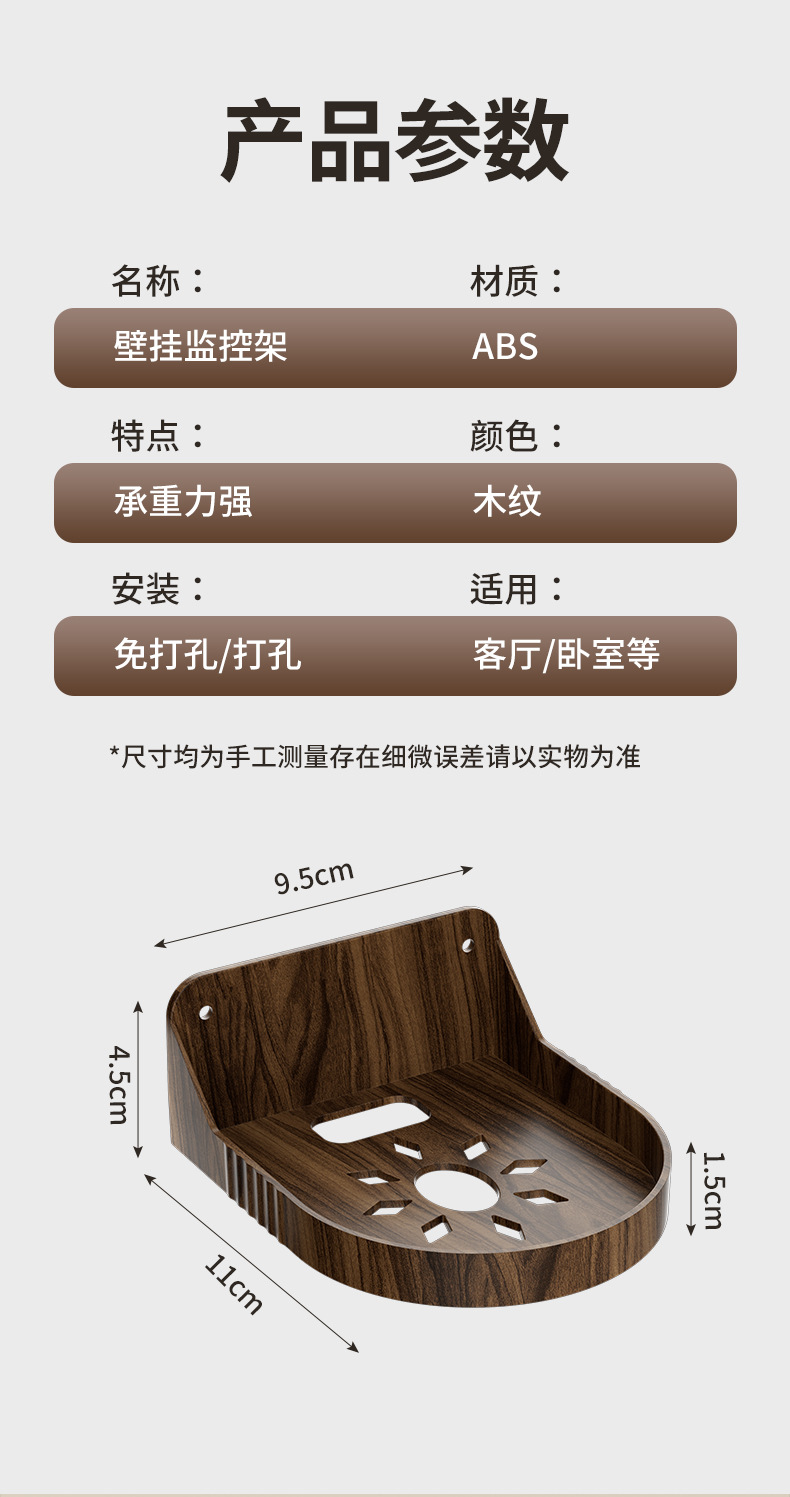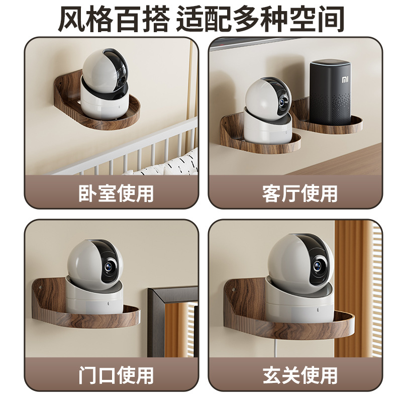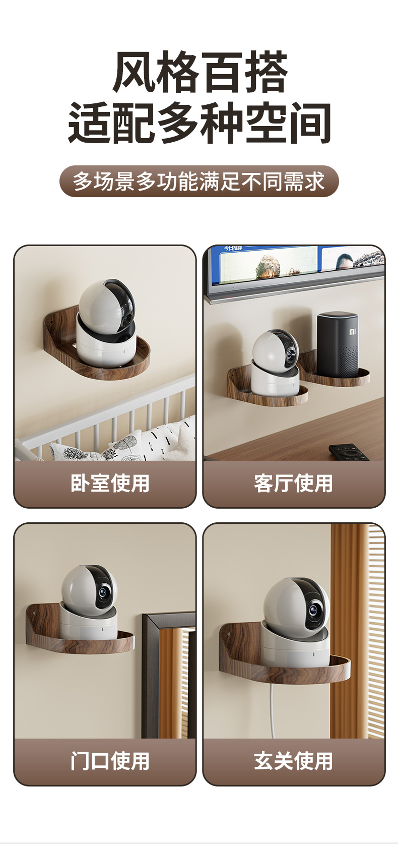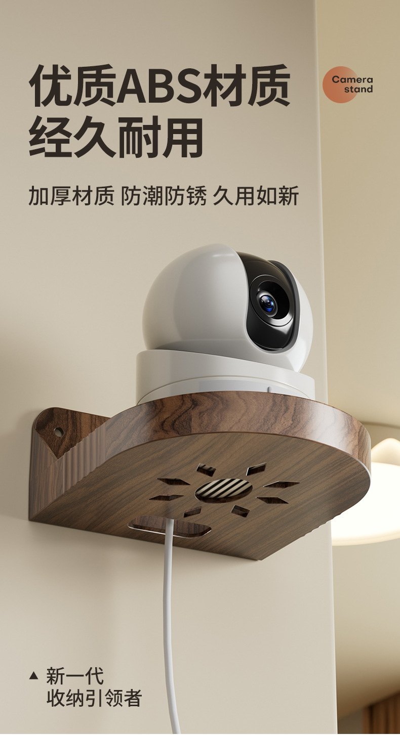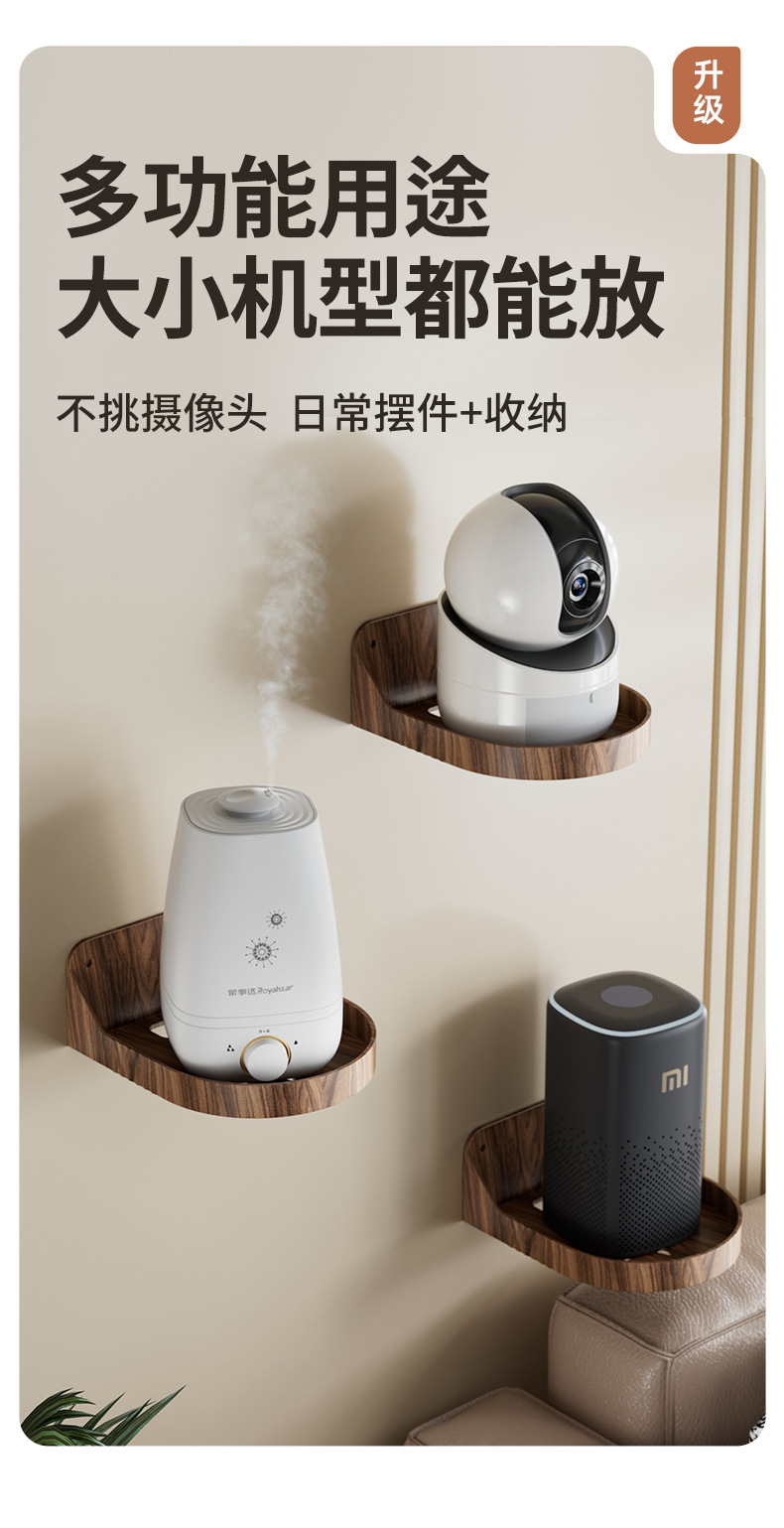 热卖免安装桃木纹家用免打孔摄像头墙上置物架壁挂式监控器托架批发