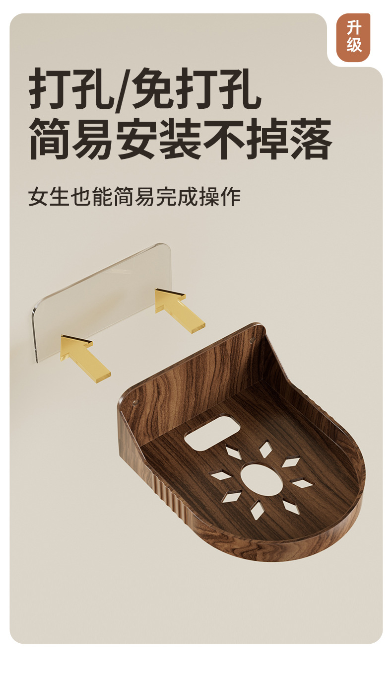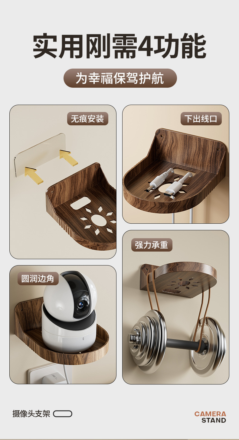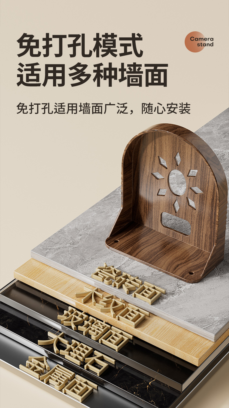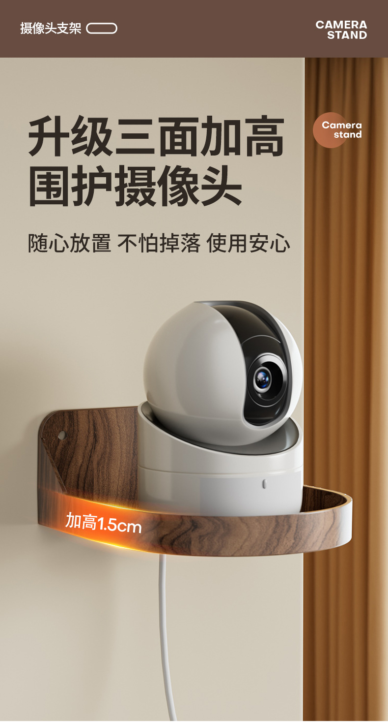 热卖免安装桃木纹家用免打孔摄像头墙上置物架壁挂式监控器托架批发