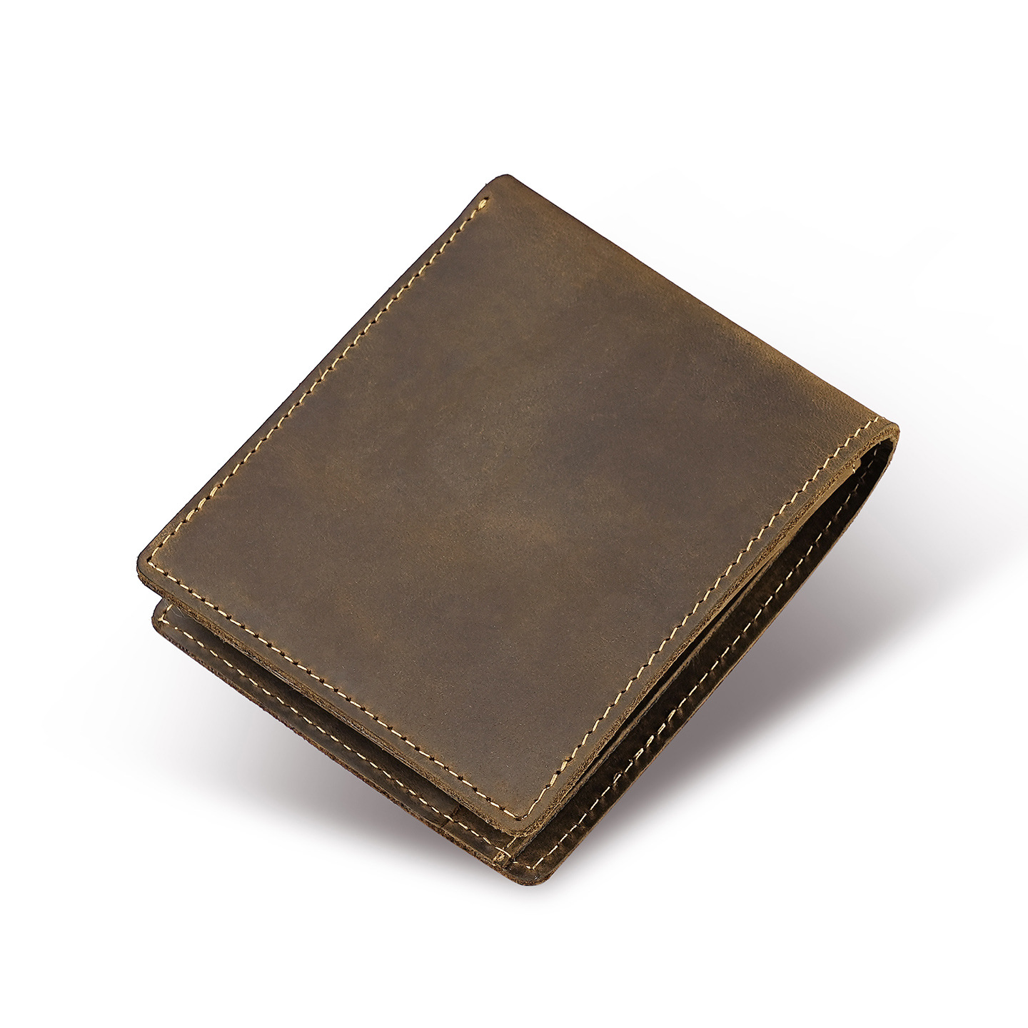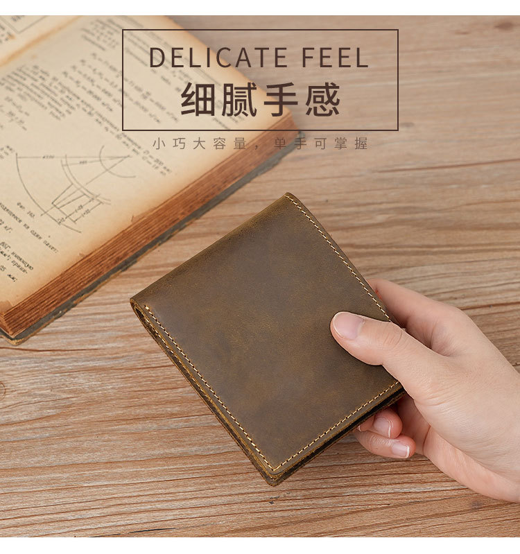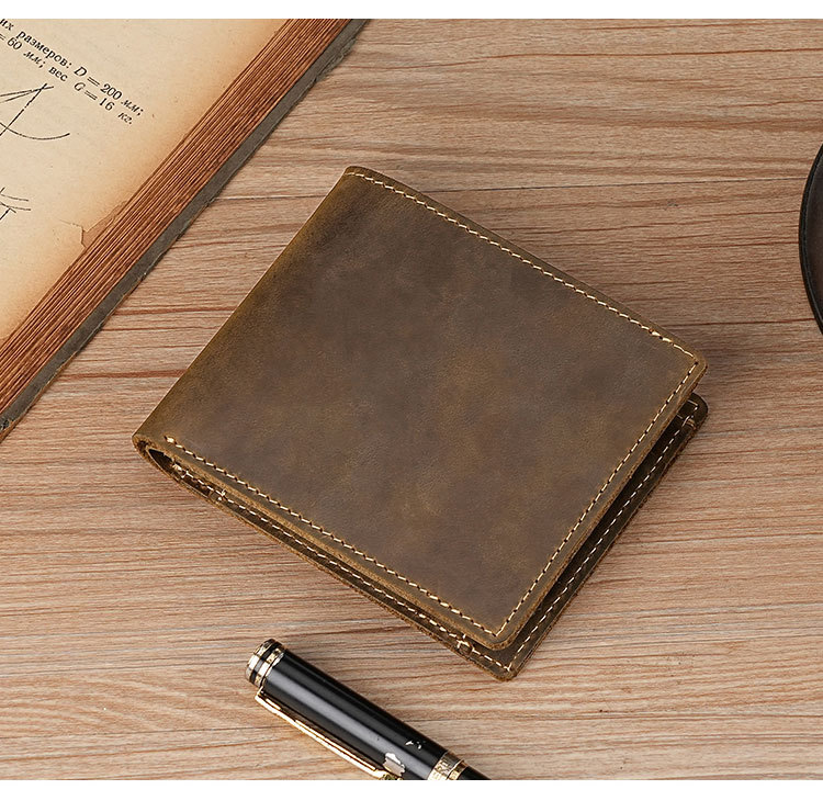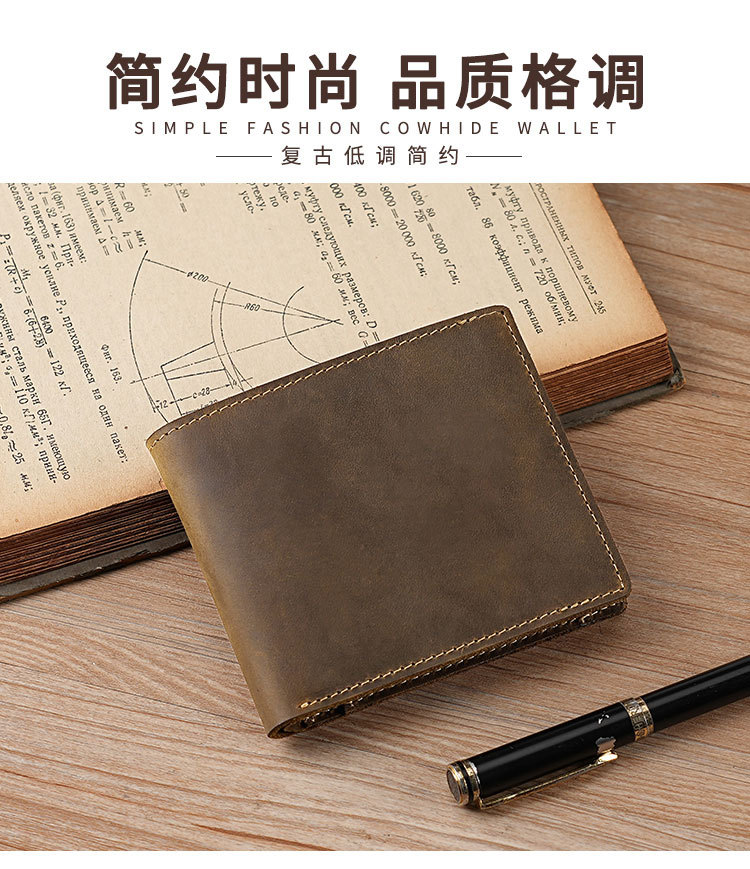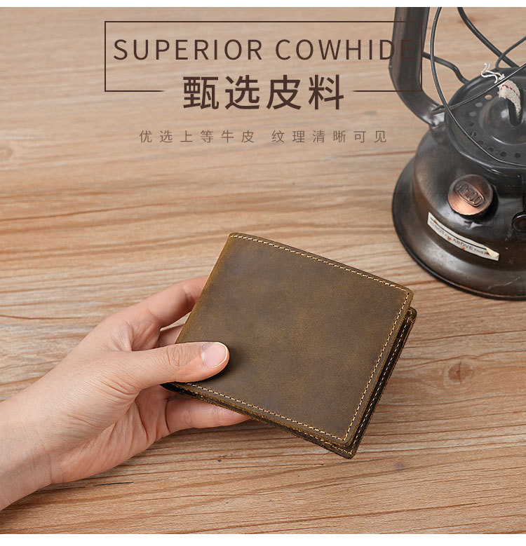 热卖复古疯马皮男士钱包多功能带按扣硬币零钱袋跨境全头层牛皮钱包男