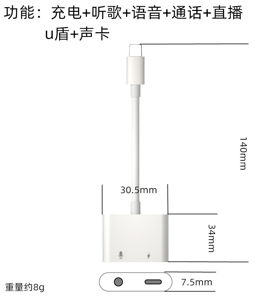 接口形式: 苹果转3.5mm耳机单线(看视频、听歌)