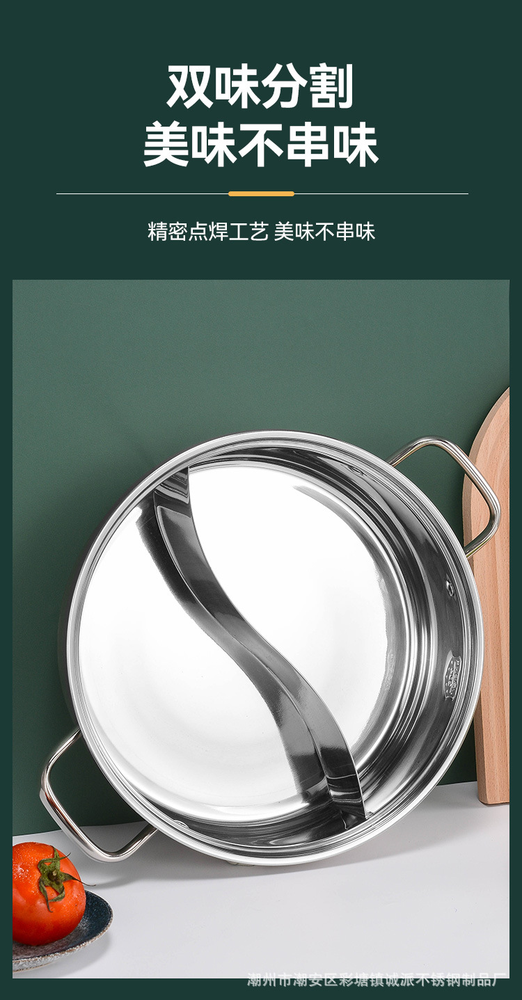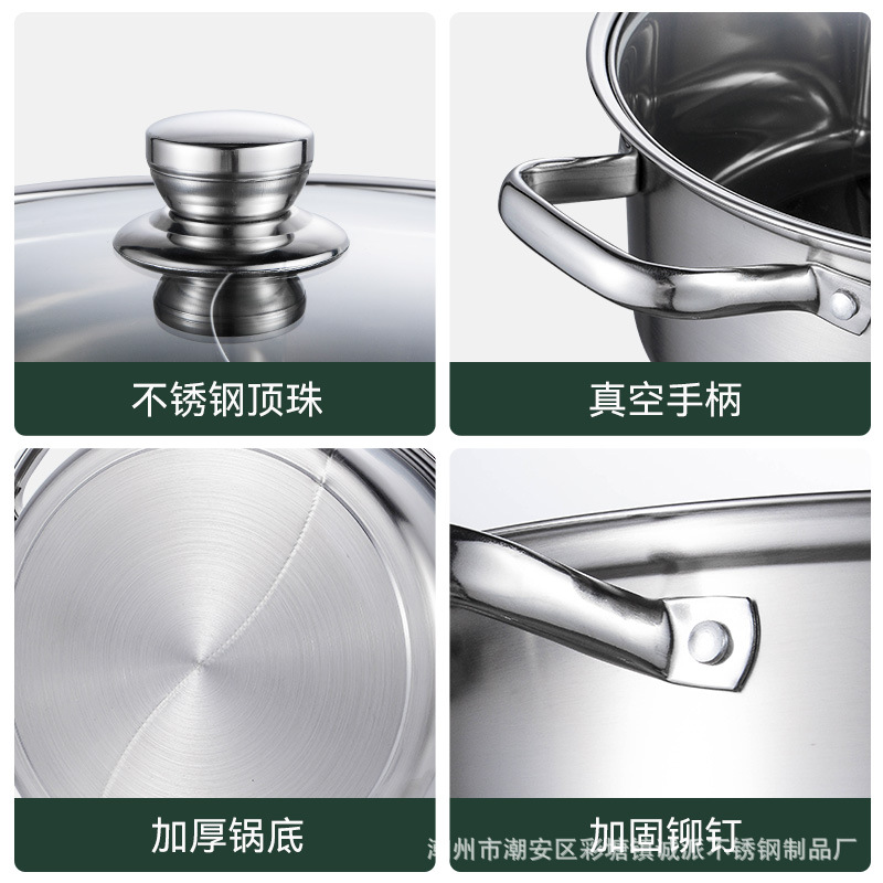 热卖304不锈钢鸳鸯锅大容量麻辣火锅盆家用双耳直型清汤锅电磁炉火锅
