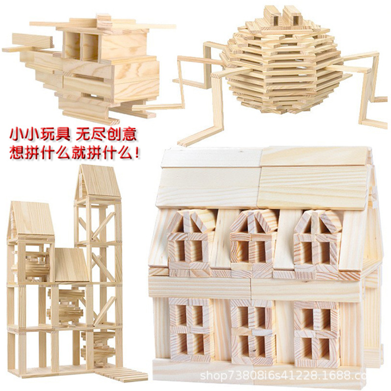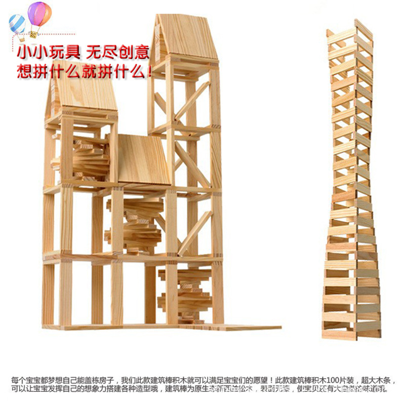 热卖幼儿建筑大师堆搭实木头质构建玩具园益智拼装卡普乐积木条100片