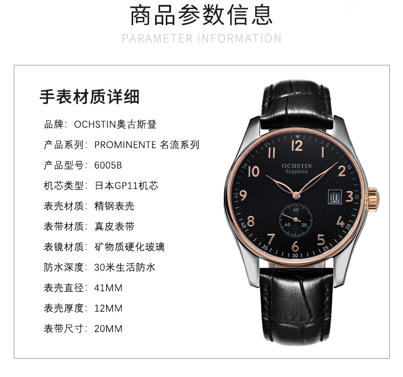 热卖瑞士正品OCHSTIN精钢商务手表全自动真皮防水高档男士石英手表
