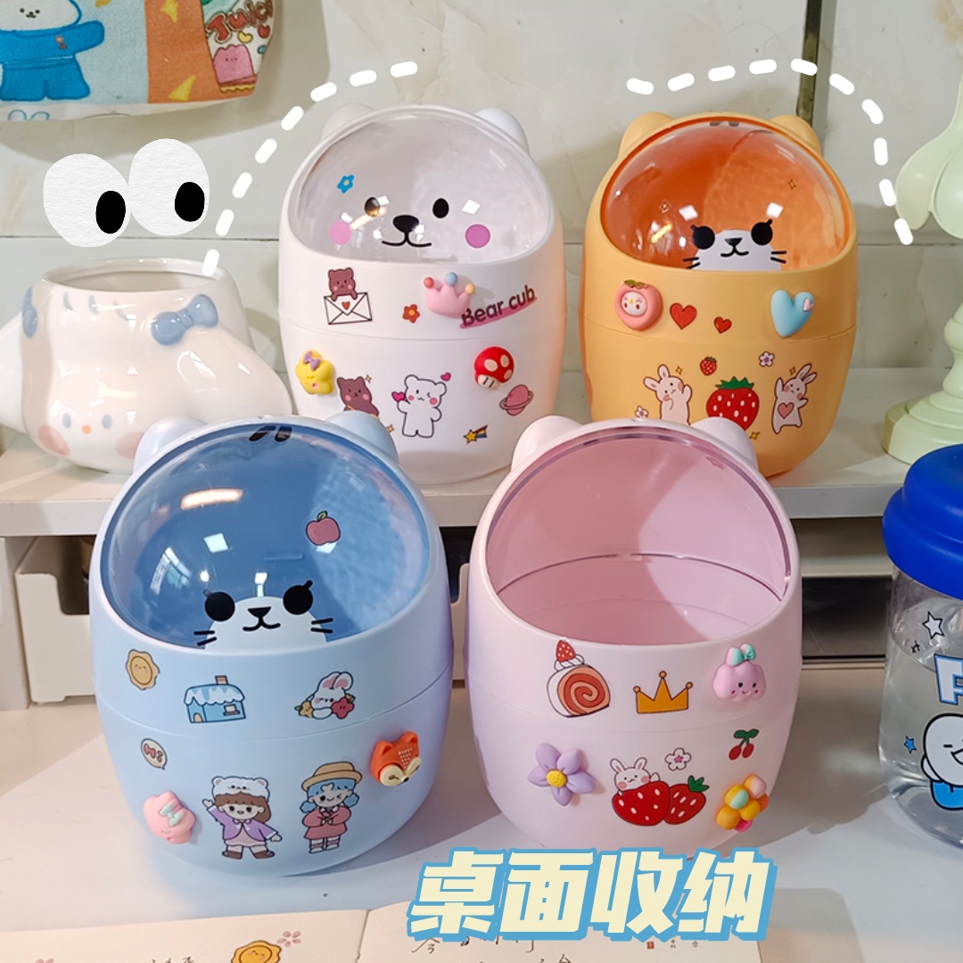热卖桌面垃圾桶可爱卡通小熊迷你收纳桶学生宿舍家用杂物收纳盒废纸桶