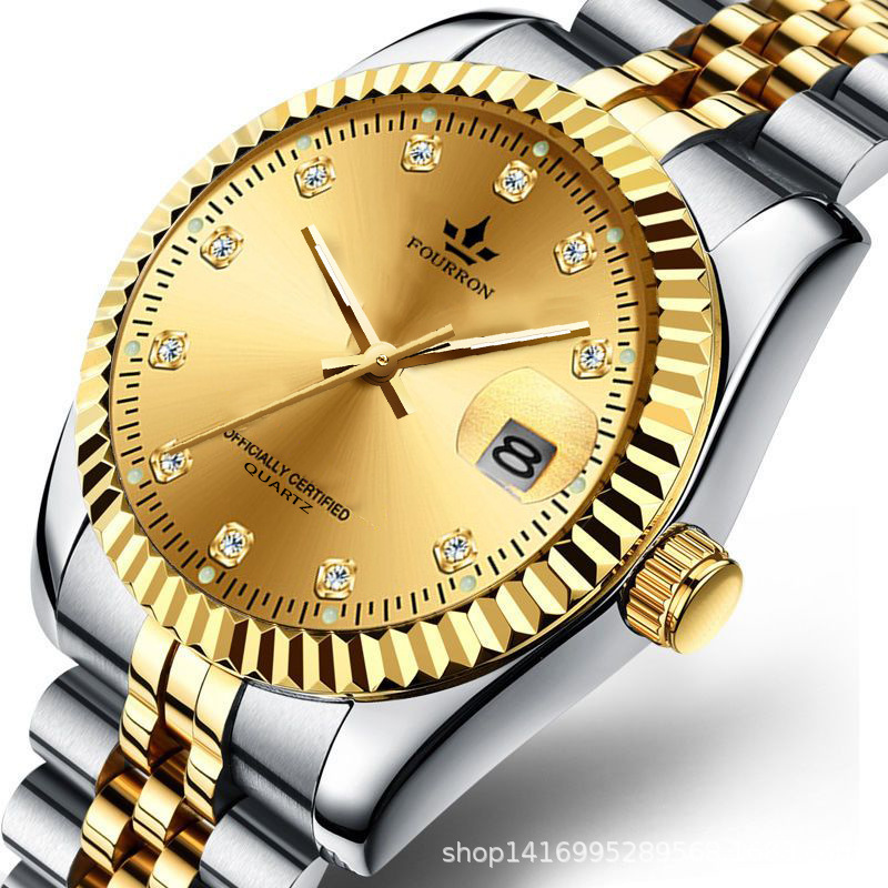 热卖放大镜玻璃日历全金男款夜光手表男士跨境情侣女士对表腕表大表盘