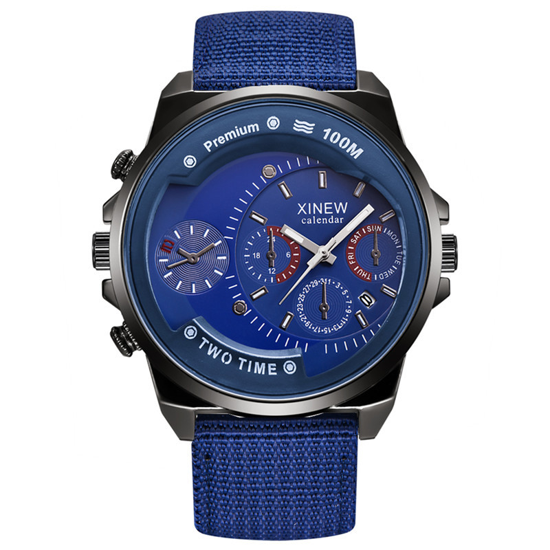 热卖XINEW Brand Men Fashion Nylon Band Calendar Quartz Watches