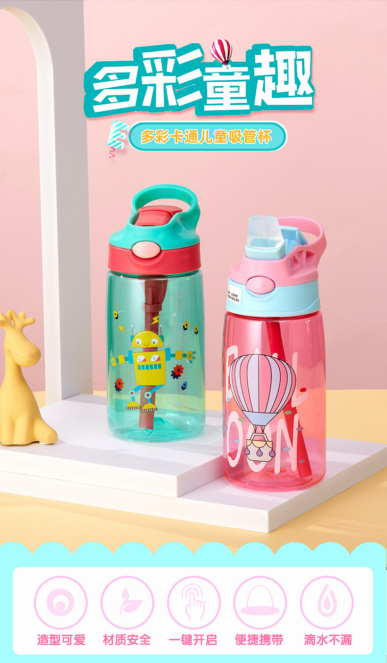 热卖塑料水杯批发严选儿童夏季便携手提水壶学生户外运动鸭嘴吸管水杯