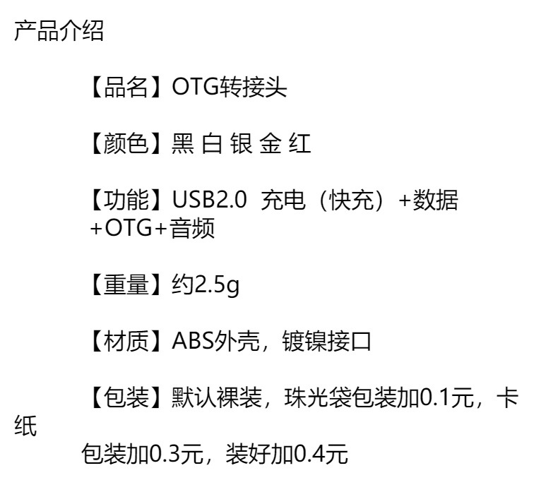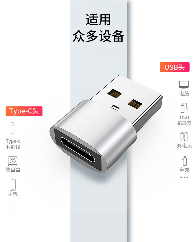 热卖type-c母转usb2.0手机数据线转换头tpc车载连接充电插头OTG转接头