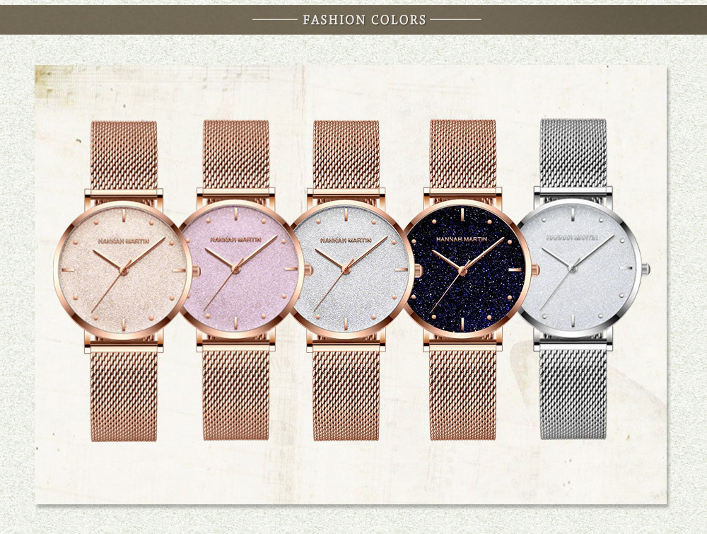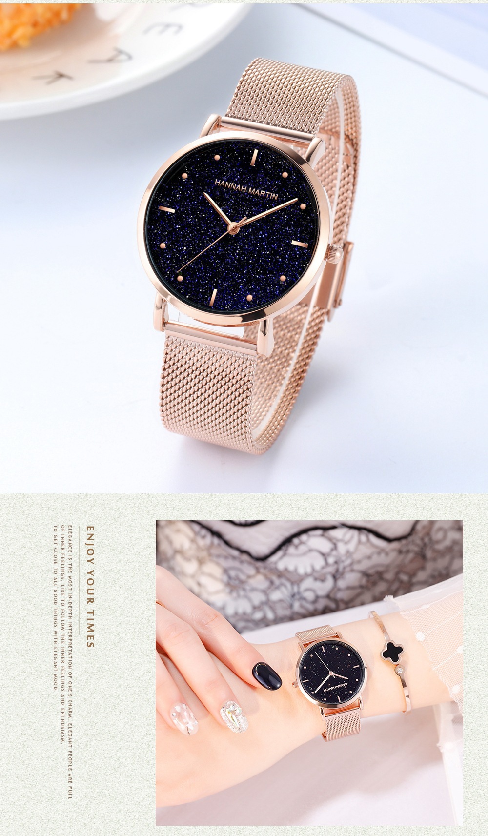 热卖跨境新款日本机芯网带女士石英手表欧美时尚磨砂星空防水手表批发