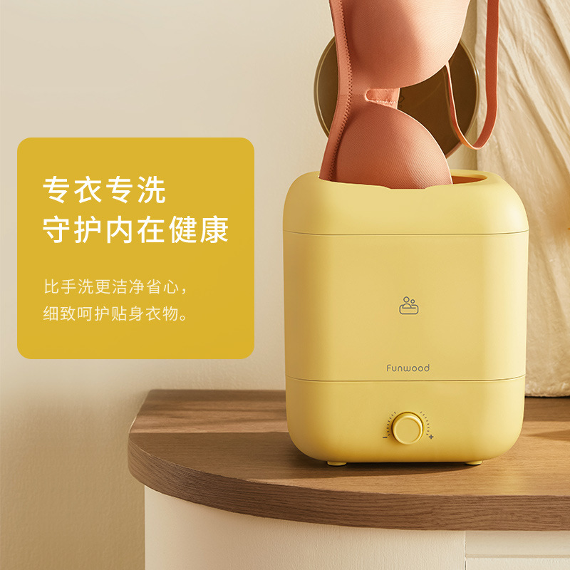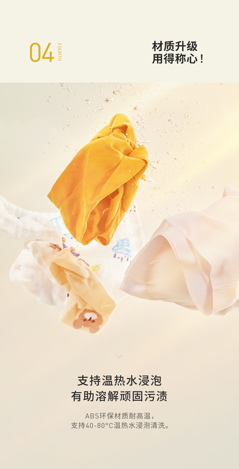 2、减少手搓,呵护嫩手。主要清洗袜子、内衣、内裤之类的轻薄衣物,洗完拿出来轻轻拧一下即可晾晒。无法清洗厚衬衫、裤子。